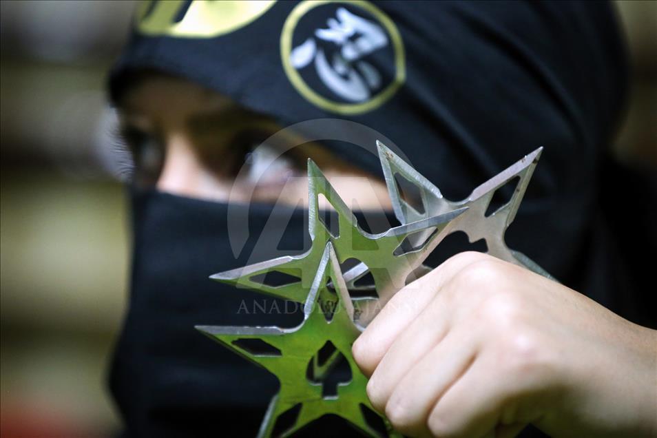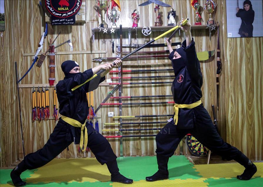 İran'ın başkenti Tahran'daki Refah Spor Salonu'nda kendini savunma maksadıyla ''ninja'' eğitimi alan kadınlar, yakın dövüş ve silah kullanma teknikleri ile ilgili antremanlarını sürdürüyor. ( Fatemeh Bahrami - Anadolu Ajansı )Fatemeh Bahrami