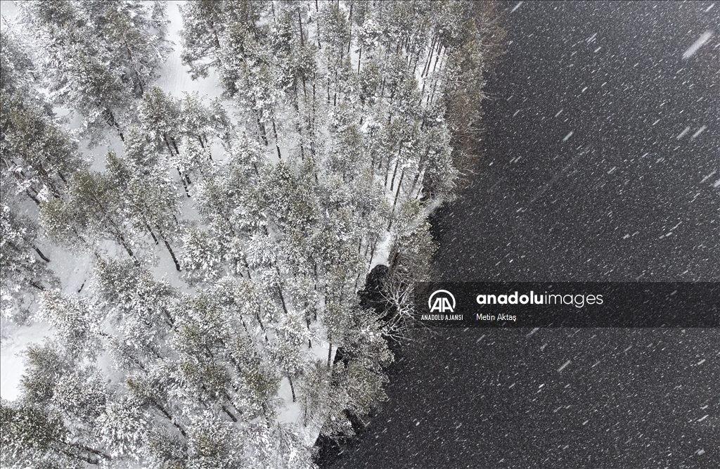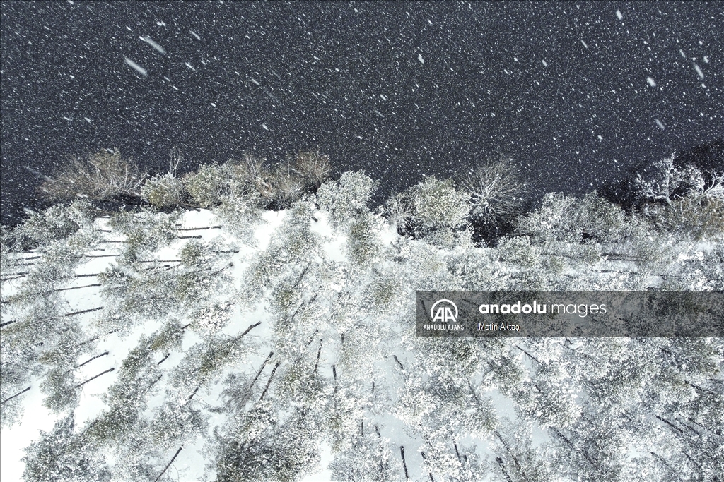 Ankara'nın Kızılcahamam ilçesine yaklaşık 35 km uzaklıkta bulunan Işık Dağı Karagöl Jeositi, kar yağışının ardından beyaza büründü.