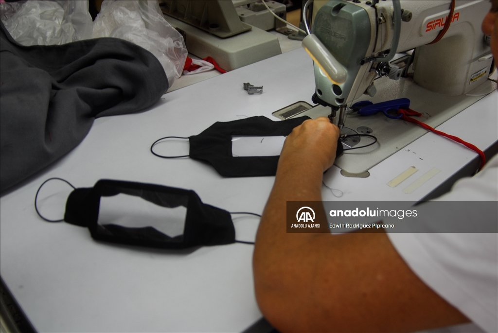 Kolombiya'nin Cali kentinde iki taraflı sensörinöral işitme kaybı olan Maria Jose, modelini annesi Nany Jose'nin (sağda) geliştirdiği maske sayesinde, daha rahat iletişim kurabiliyor. Maskedeki dudakları görünür kılan boşluk, işaret dili kullanmayan fakat dudak okuyabilen insanlarla iletişim kurabilmeye yardımcı oluyor. Günlük yaşamda işitme kaybı olan insanlar için temel bir yardımcı haline gelen maskeler, Kolombiya'da daha fazla üretilmeye başladı. ( Edwin Rodriguez Pipicano - Anadolu Ajansı )Edwin Rodriguez Pipicano