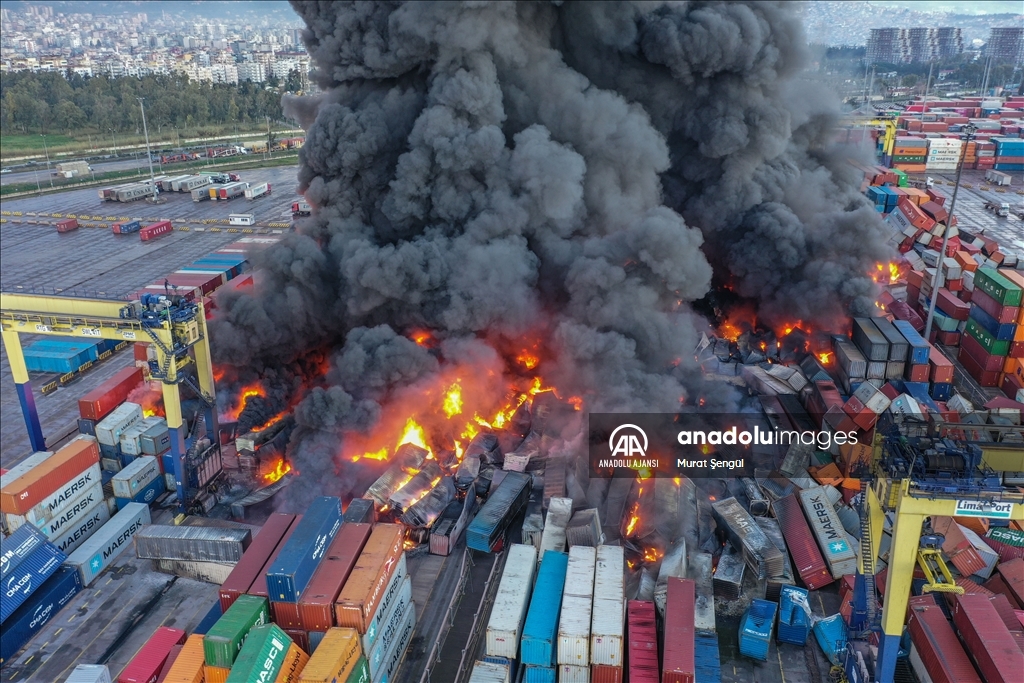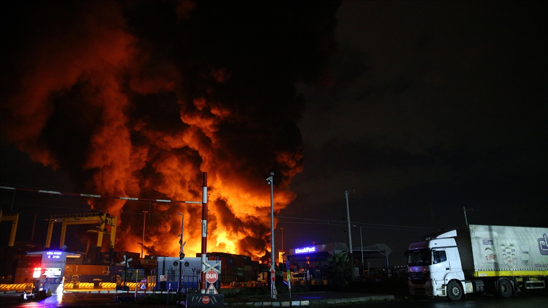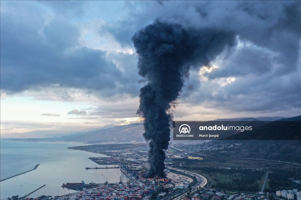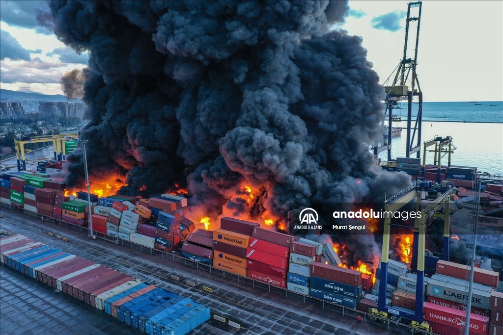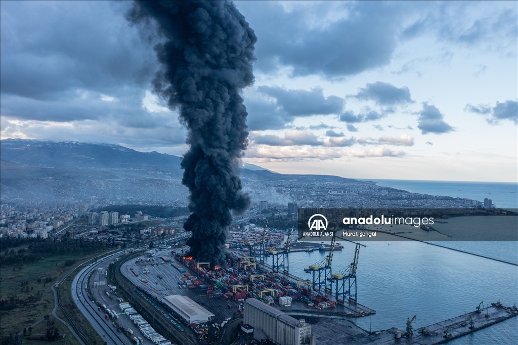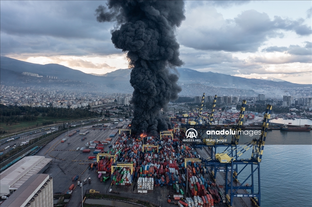 İskenderun Limanı'nda depremde devrilen konteynerlerde çıkan yangın devam ediyor