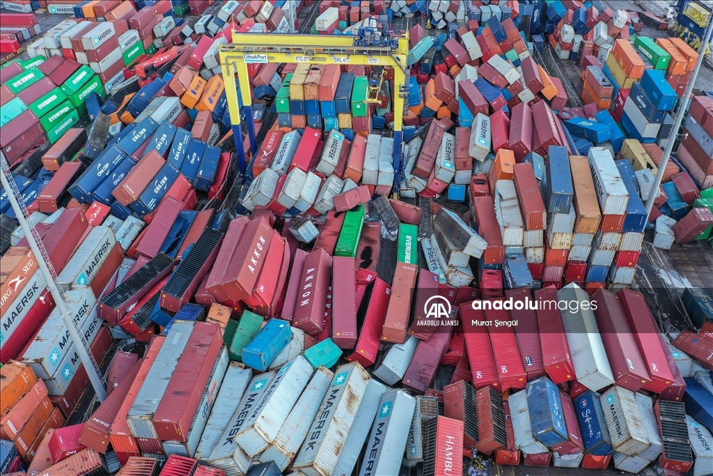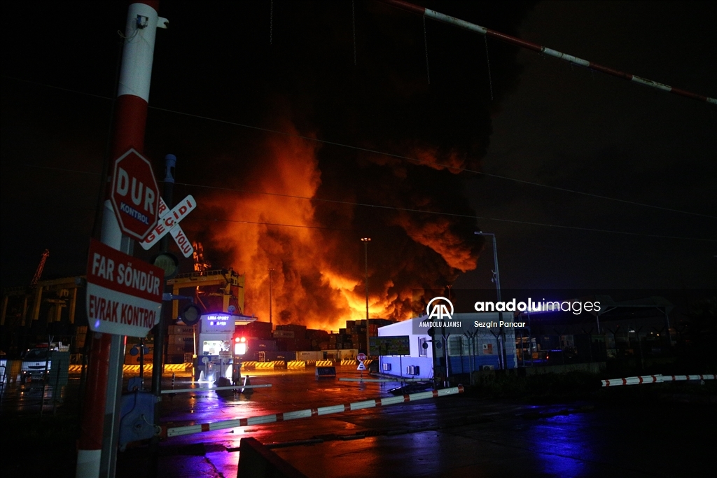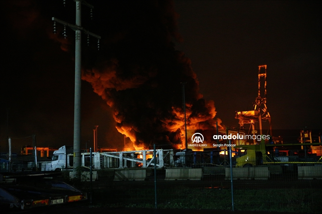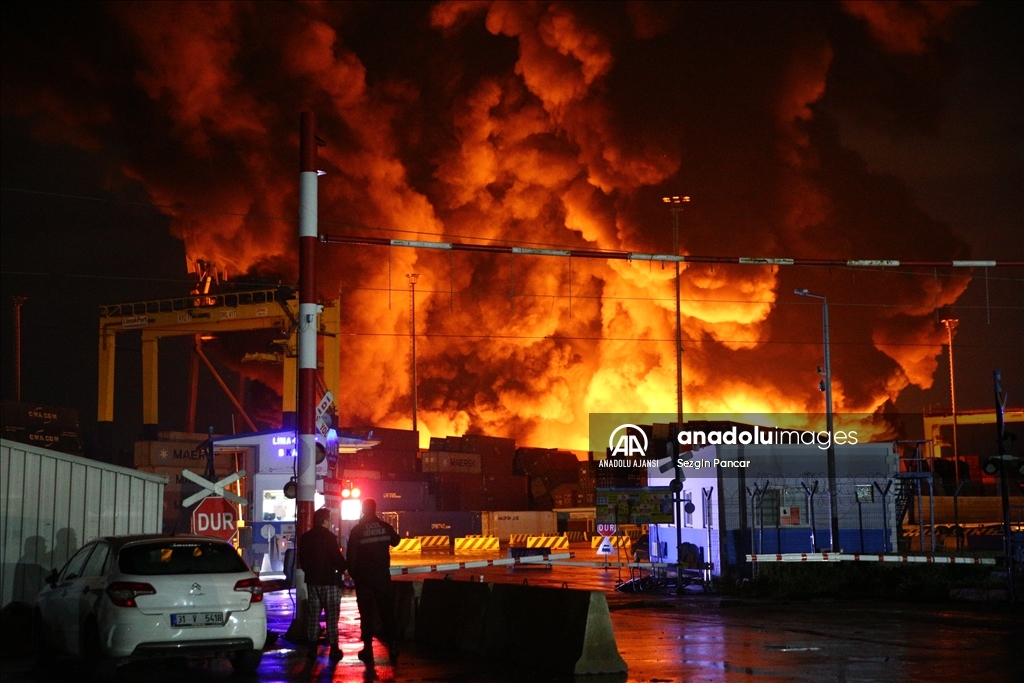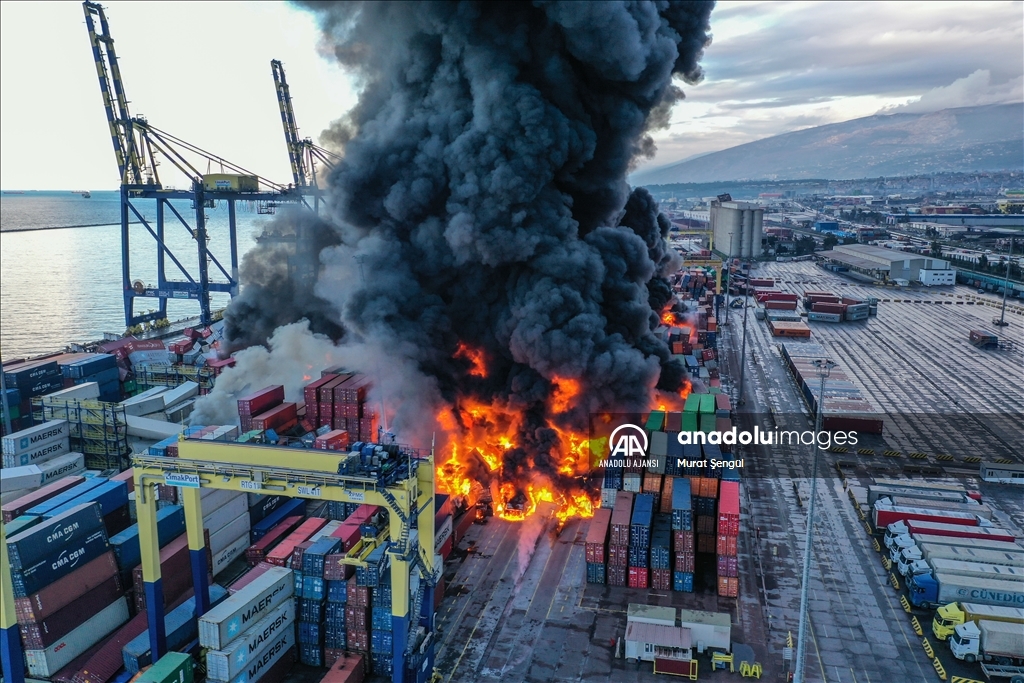 İskenderun Limanı'nda depremde devrilen konteynerlerde çıkan yangın devam ediyor