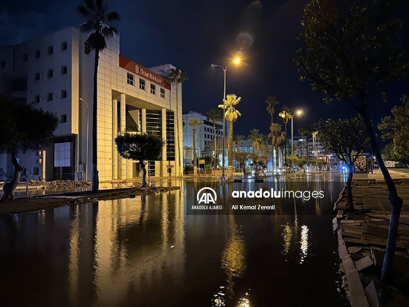 Hatay'ın İskenderun ilçesinde, lodos nedeniyle deniz seviyesinin yükselmesi sonucu sahil bandındaki bazı caddeler su altında kaldı.