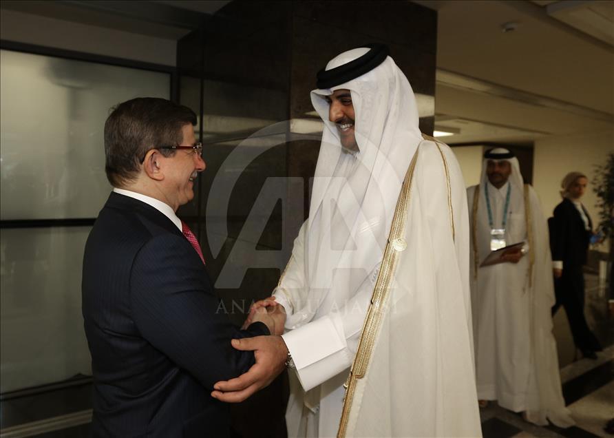 Başbakan Ahmet Davutoğlu, İslam İşbirliği Teşkilatı (İİT) 13'üncü İslam Zirvesi kapsamında Katar Emiri Temim Bin Hamad Al Sani ile görüştü. ( Halil Sağırkaya - Anadolu Ajansı )Halil Sağırkaya