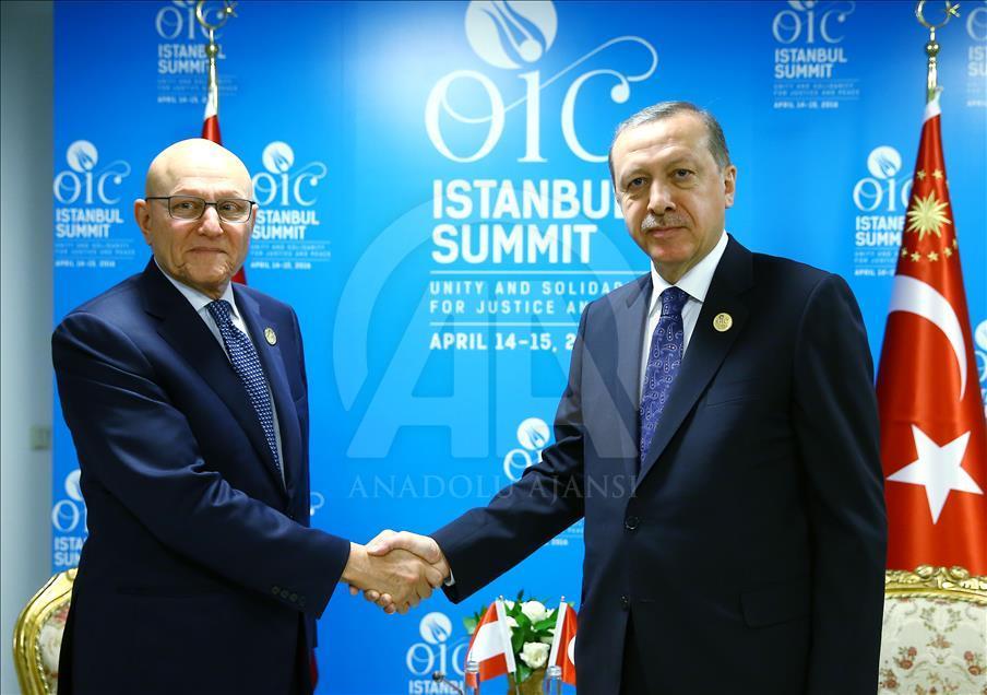 Cumhurbaşkanı Recep Tayyip Erdoğan, İslam İşbirliği Teşkilatı 13. Zirvesi kapsamında İstanbul'da bulunan Lübnan Başbakanı Tammam Salam (solda) ile bir araya geldi. ( Kayhan Özer - Anadolu Ajansı )Kayhan Özer