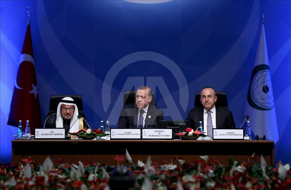 İslam İşbirliği Teşkilatı 13. Zirvesi kapanış oturumu gerçekleşti. Kapanış oturumuna, Cumhurbaşkanı Recep Tayyip Erdoğan (ortada), Dışişleri Bakanı Mevlüt Çavuşoğlu ve İslam İşbirliği Teşkilatı (İİT) Genel Sekreteri İyad Emin Medeni (solda) katıldı ( Salih Zeki Fazlıoğlu - Anadolu Ajansı )Salih Zeki Fazlıoğlu