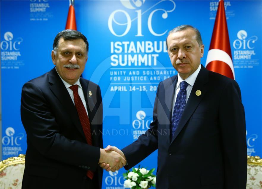 Cumhurbaşkanı Recep Tayyip Erdoğan, İslam İşbirliği Teşkilatı (İİT) 13'üncü İslam Zirvesi kapsamında Libya Ulusal Mutakabat Hükümeti Başkanlık Konseyi Başkanı Fayez Mustafa Al-Sarraj ile bir araya geldi. ( Kayhan Özer - Anadolu Ajansı )Kayhan Özer
