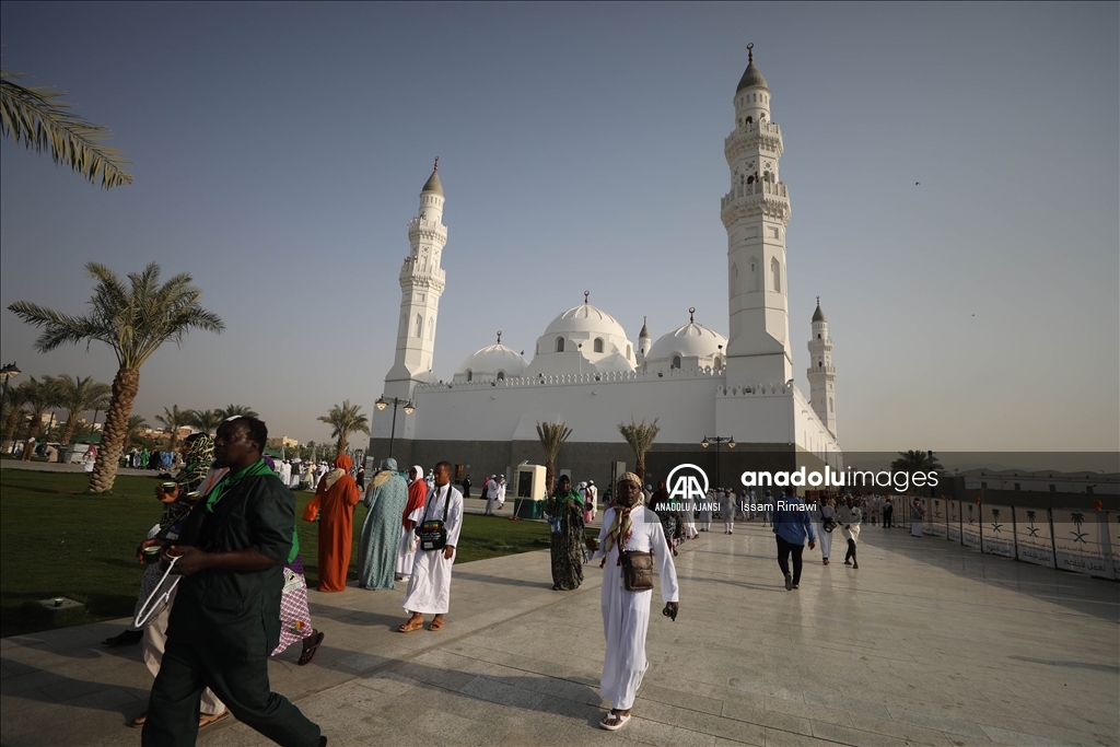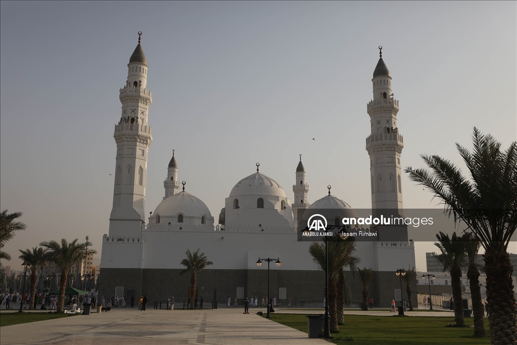 Kutsal topraklara gelen Hacı adayları, Medine kentindeki Kuba Mescidini ziyaret edip namaz kılıp, dua ediyor. (Issam Rimawi - Anadolu Ajansı)Issam Rimawi
