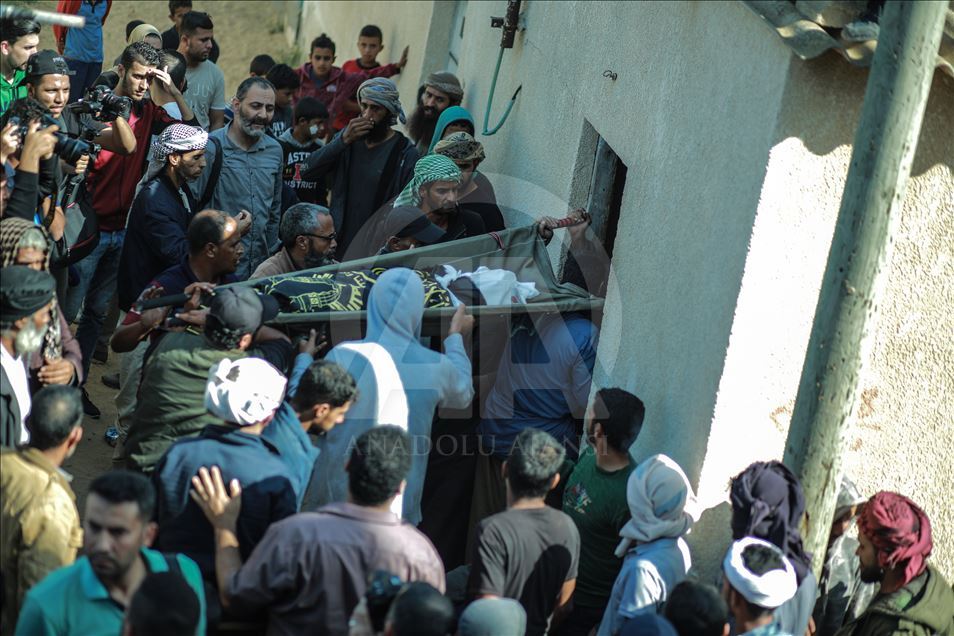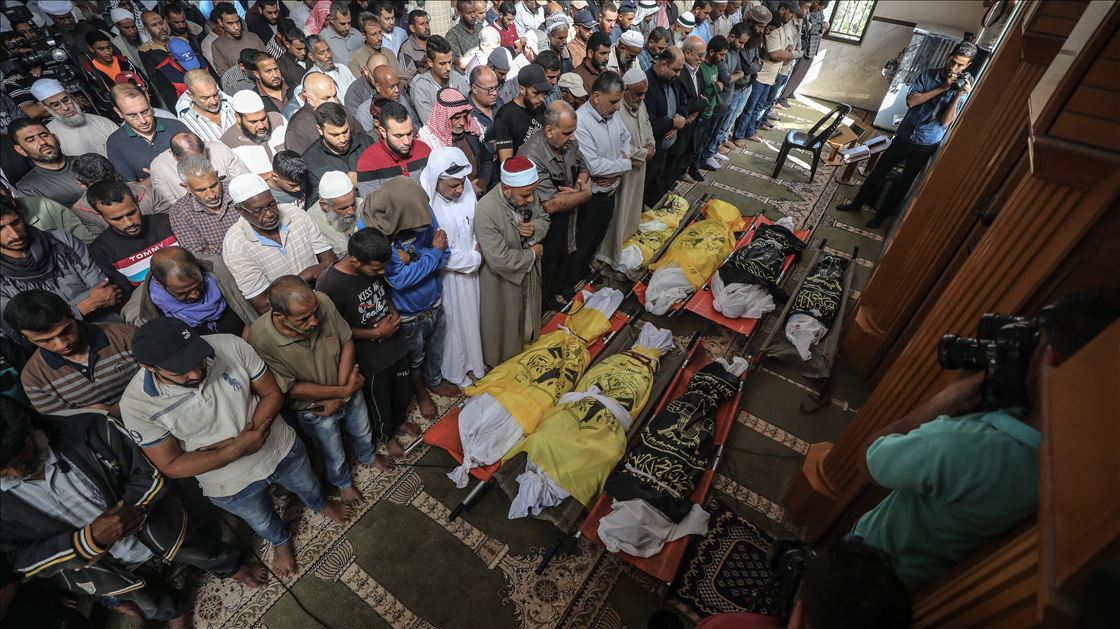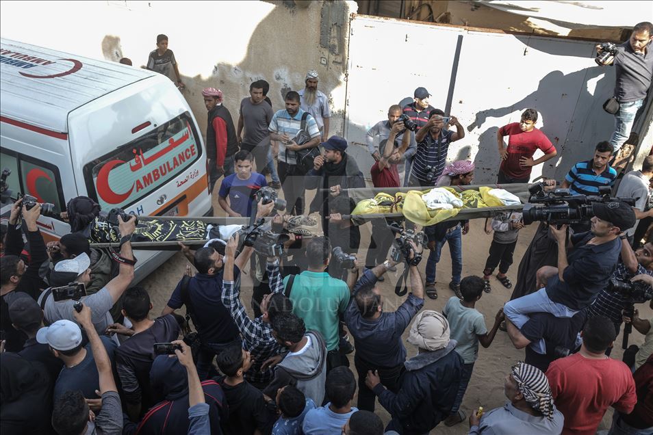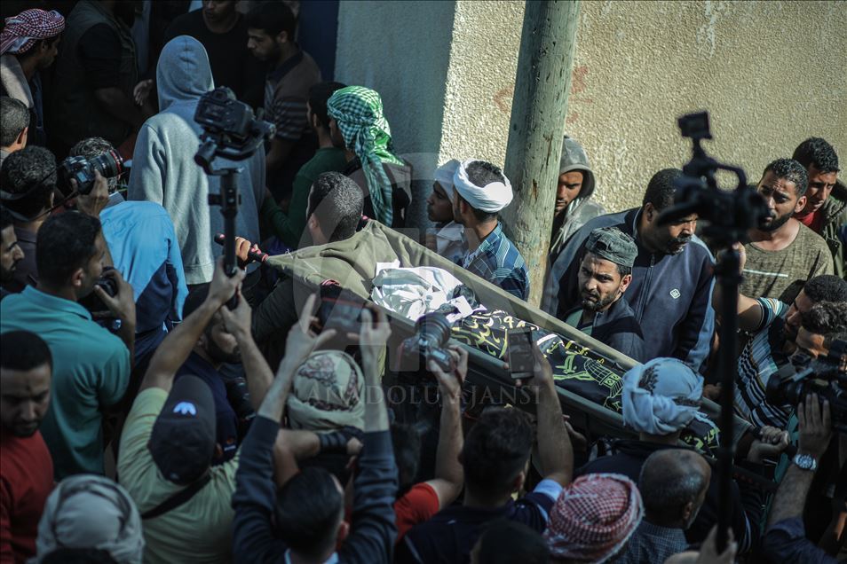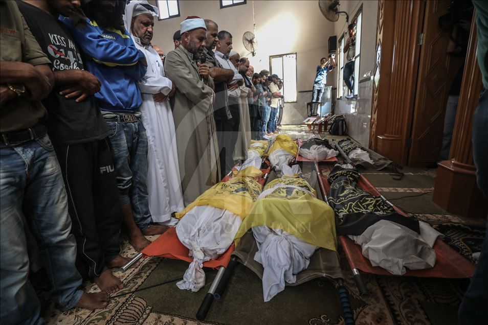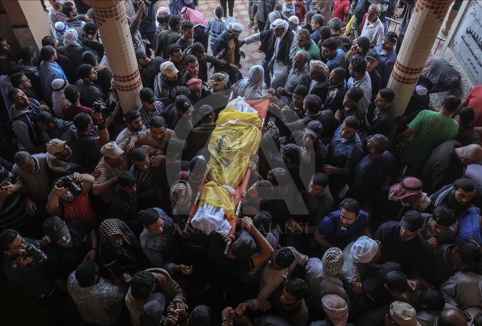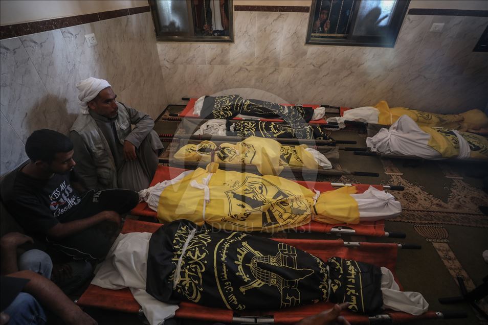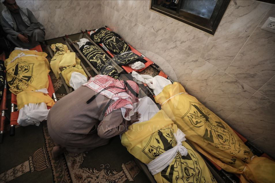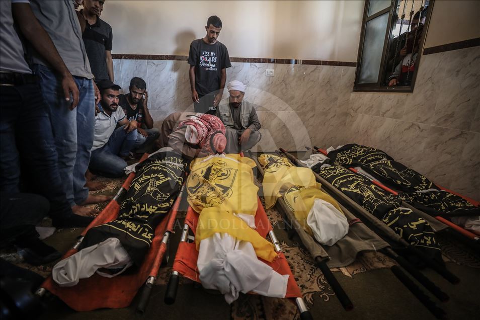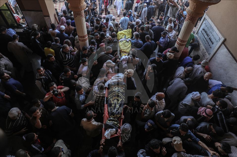 İsrail ordusunun Gazze'de gerçekleştirdiği hava saldırısında hayatını kaybeden İslami Cihad Hareketi'nin önde gelen komutanlarından Resmi Ebu Melhus es-Sevarika ve ailesinden de 3'ü çocuk 7 kişi için Deyr el-Belah kentinde cenaze töreni düzenlendi. ( Ali Jadallah - Anadolu Ajansı )Ali Jadallah