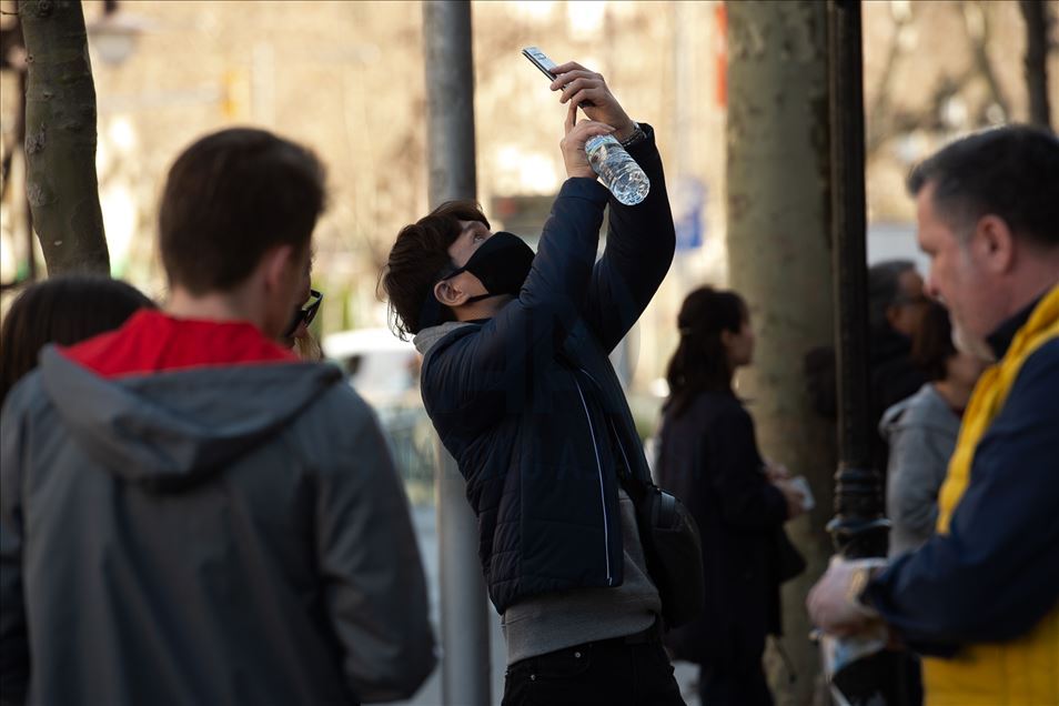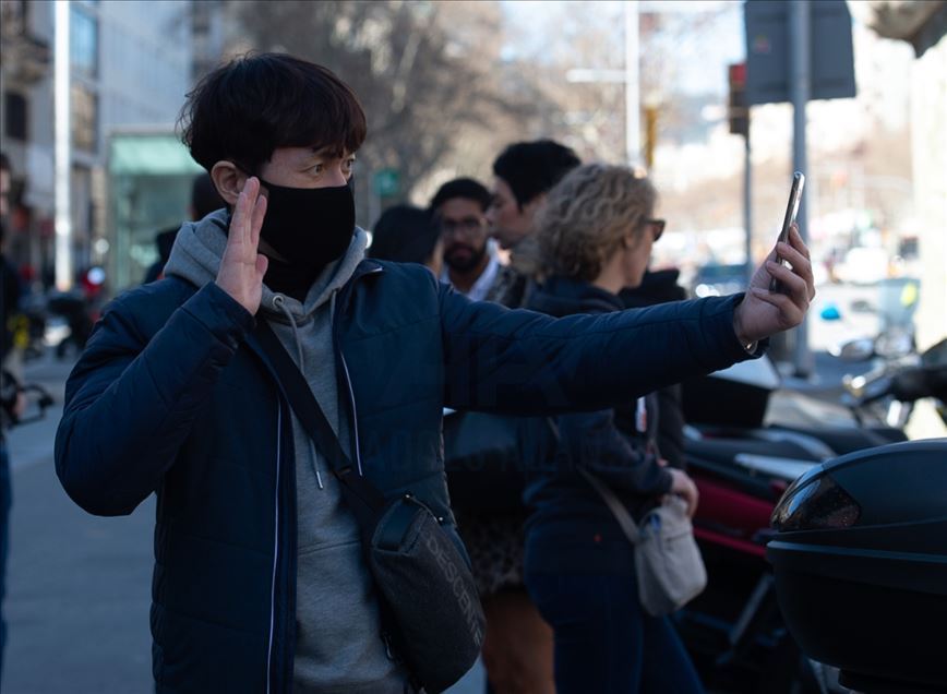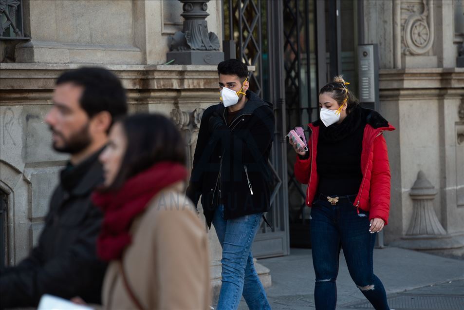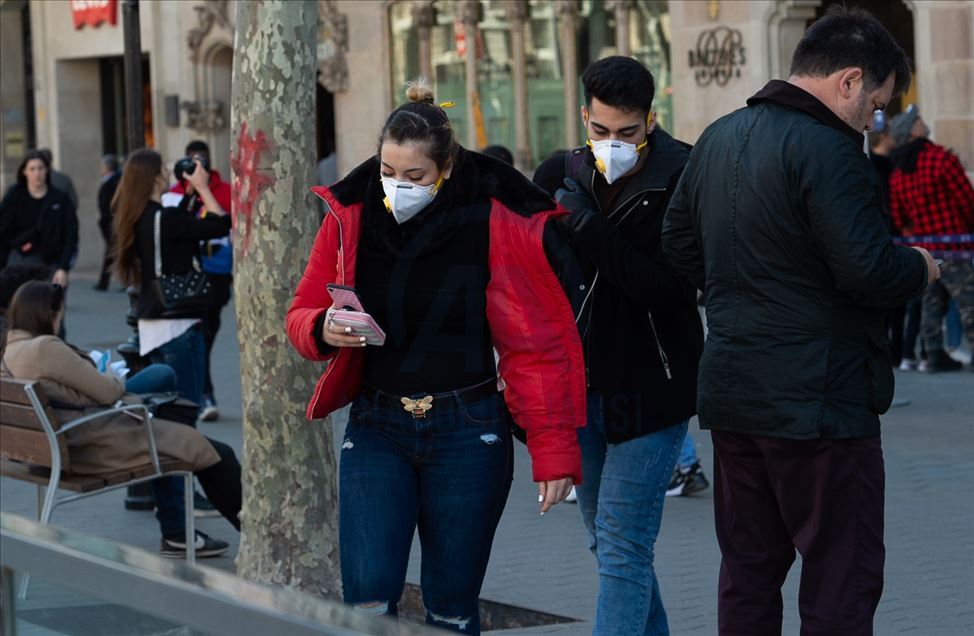 Çin'in Hubey eyaletinin Vuhan kentinde ortaya çıkan ve birçok ülkeye sıçrayan koronavirüs (Kovid-19) salgınına tedbir olarak, İspanya'nın Barselona kentinde bazı vatandaşların tıbbi maske taktıkları görüldü.