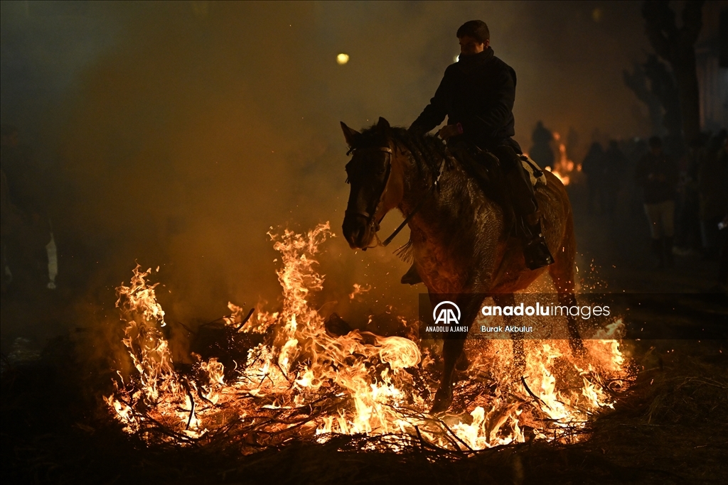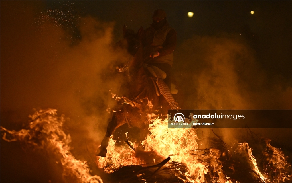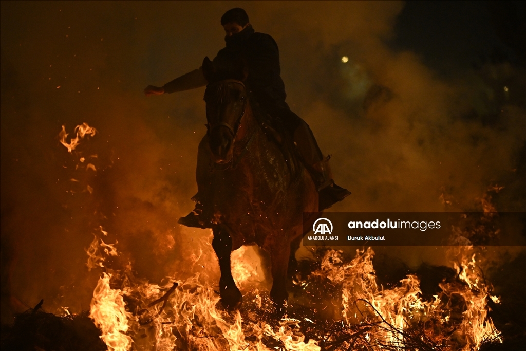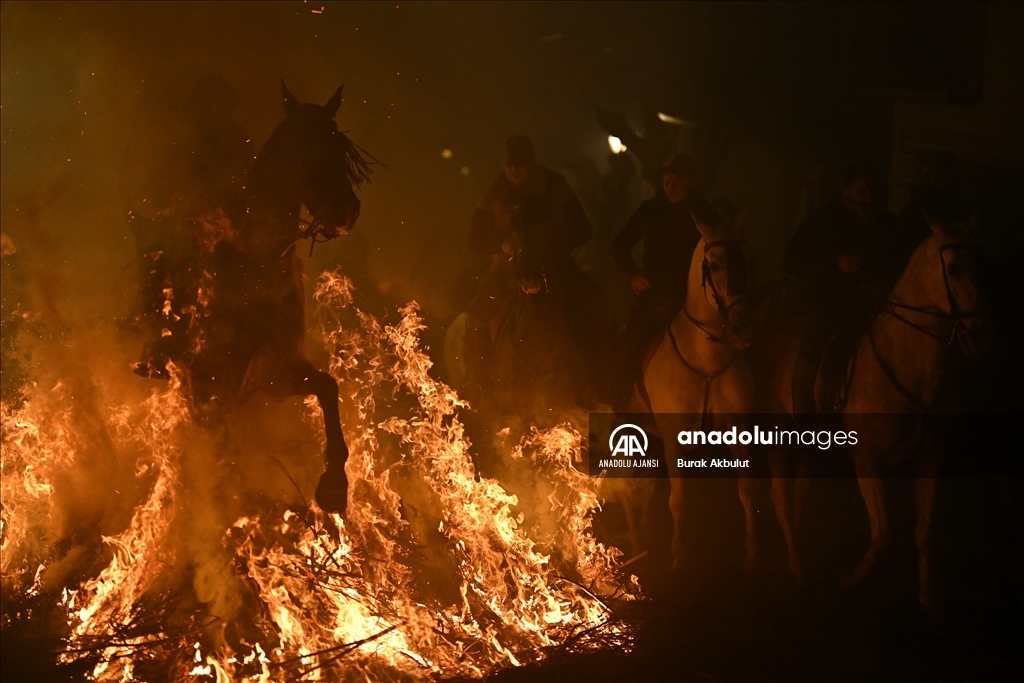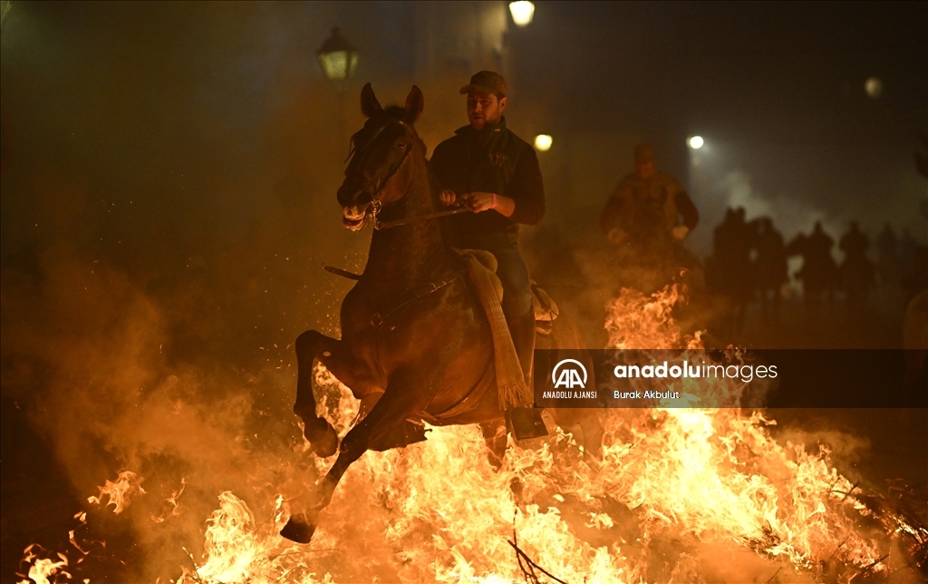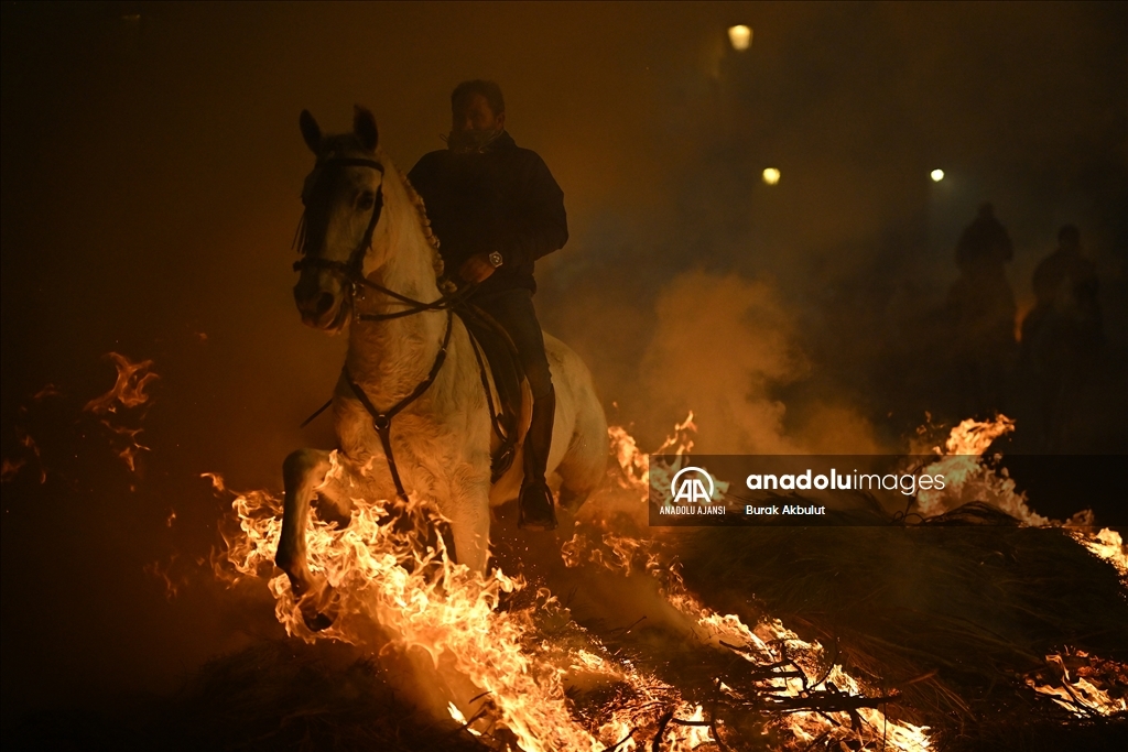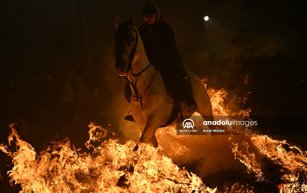İspanya'nın Avila kentinin San Bartolome de Pinares köyünde, 18. yüzyıldan kalma "Las Luminarias" etkinliği kapsamında atlar "kötülükleri kovmak" için ateşin üzerinden atlatıldı. Katolik dini inanışına göre hayvanları koruduğu kabul edilen Aziz Anton anısına 16 Ocak gecesi yapılan etkinlik, 550 nüfuslu köyde 400 yıldan fazla bir geleneğe dayanıyor. ( Burak Akbulut - Anadolu Ajansı )Burak Akbulut
