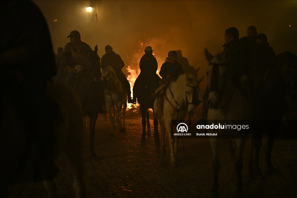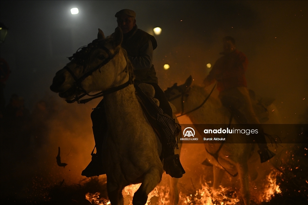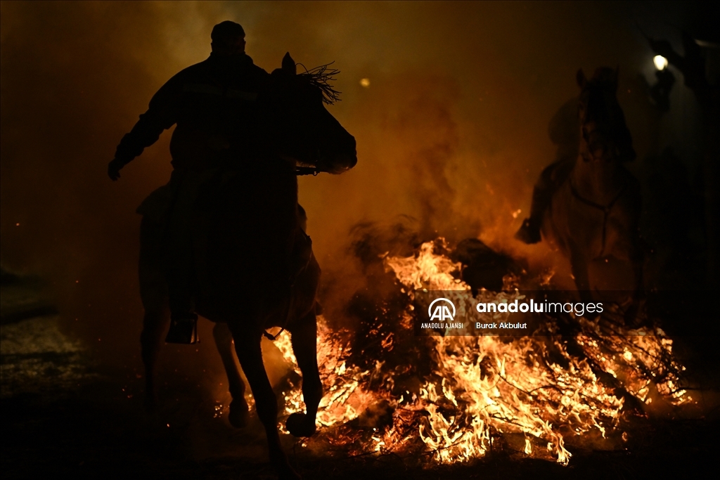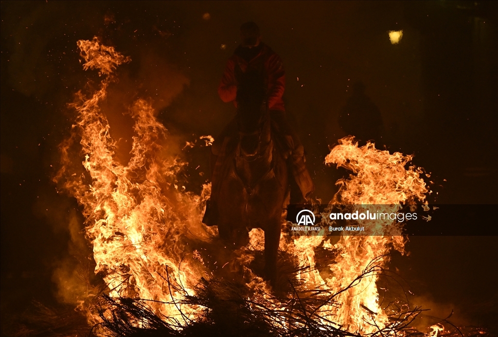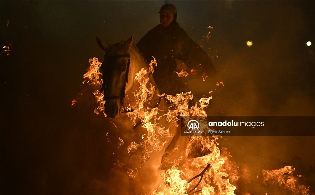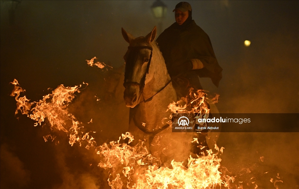 İspanya'nın Avila kentinin San Bartolome de Pinares köyünde, 18. yüzyıldan kalma "Las Luminarias" etkinliği kapsamında atlar "kötülükleri kovmak" için ateşin üzerinden atlatıldı. Katolik dini inanışına göre hayvanları koruduğu kabul edilen Aziz Anton anısına 16 Ocak gecesi yapılan etkinlik, 550 nüfuslu köyde 400 yıldan fazla bir geleneğe dayanıyor. ( Burak Akbulut - Anadolu Ajansı )Burak Akbulut