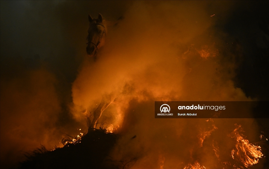 İspanya'da "kötülükleri kovmak için" atlar ateş üzerinden atlatıldı