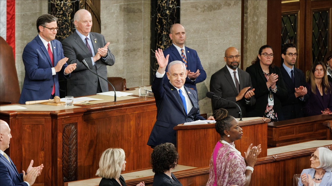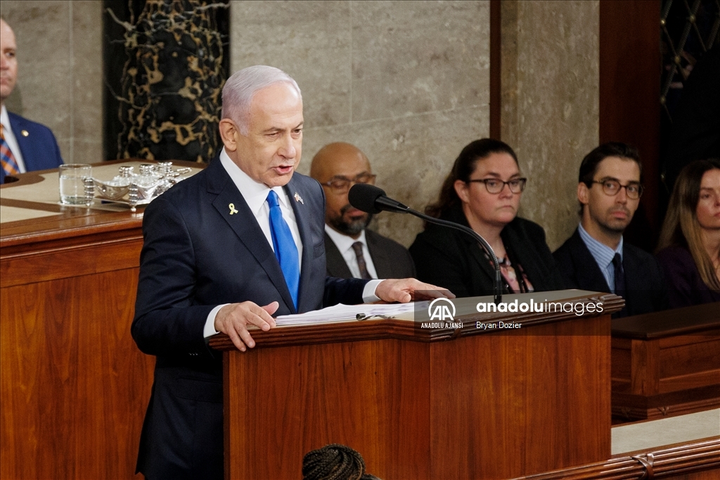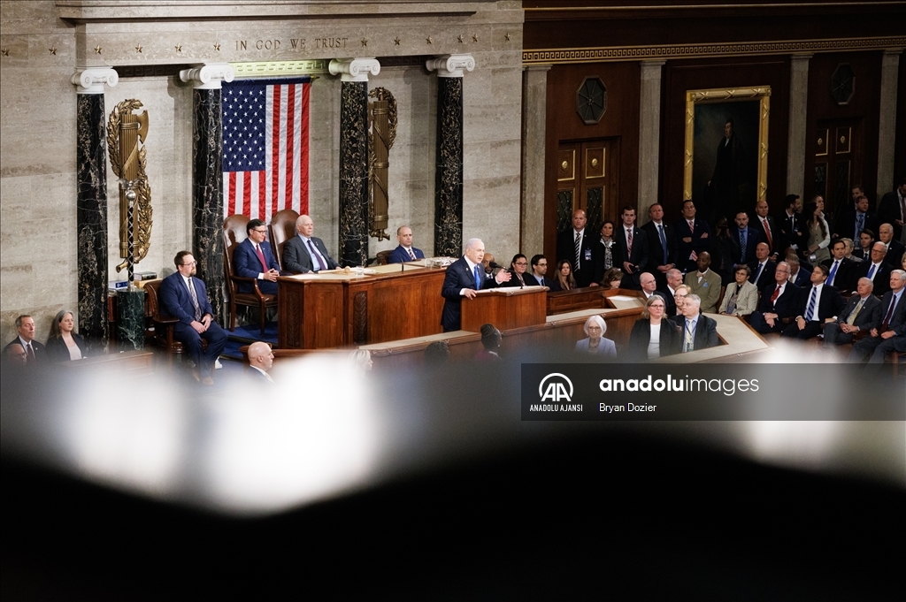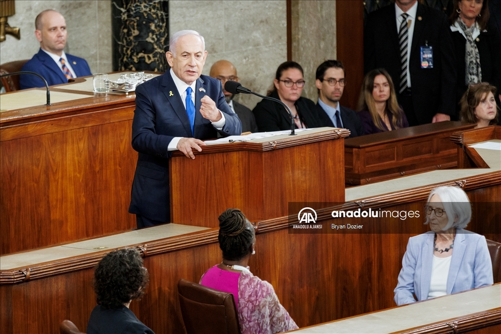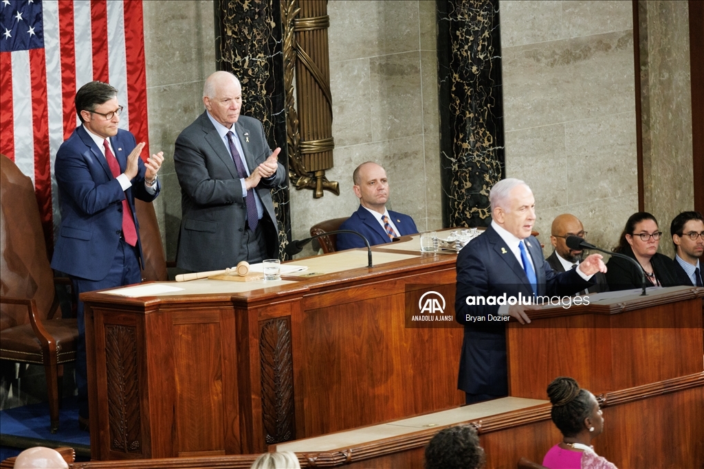 Kongre üyeleri Netanyahu'yu ayakta alkışladı. (Bryan Dozier - Anadolu Ajansı)Bryan Dozier