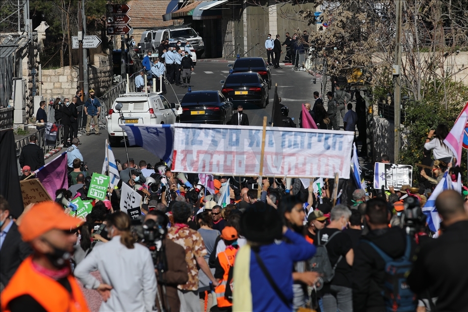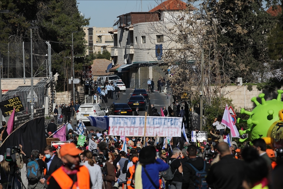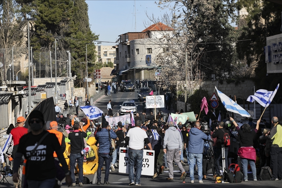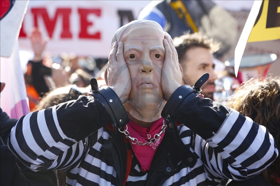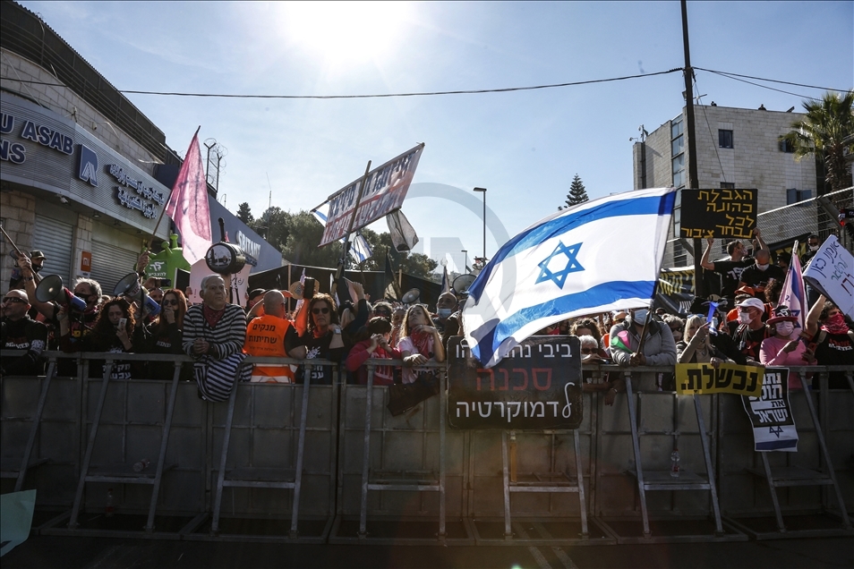 İsrail'de görevdeyken yargılanan ilk Başbakan olarak tarihe geçen Binyamin Netanyahu'nun davasının ikinci duruşması, işgal altındaki Doğu Kudüs'te yer alan İsrail'e ait Kudüs Bölge Mahkemesinde görüldü. Duruşma öncesi İsrail polisi, mahkemenin çevresindeki birçok yolu trafiğe kapatırken, bir grup Netanyahu karşıtı da mahkeme yakınında gösteri düzenledi. ( Mostafa Alkharouf - Anadolu Ajansı )Mostafa Alkharouf