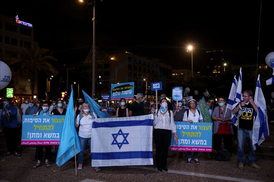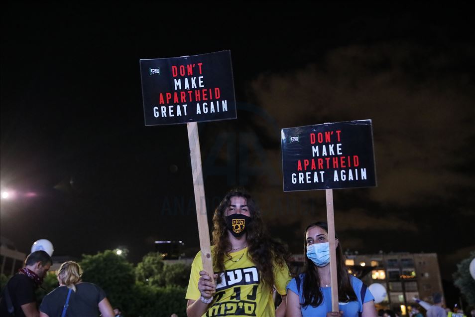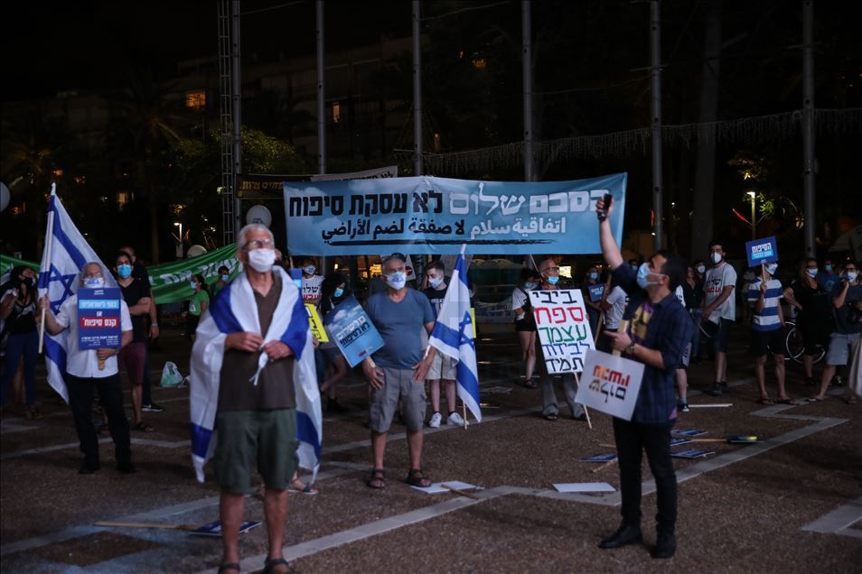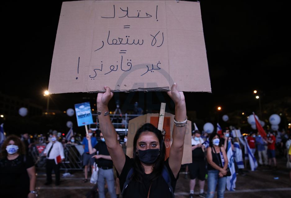 İsrail yönetiminin işgal altındaki Batı Şeria'da yer alan yasa dışı Yahudi yerleşim birimleri ve Ürdün Vadisi'ni "ilhak" planını protesto etmek için Tel Aviv'de gösteri düzenlendi.