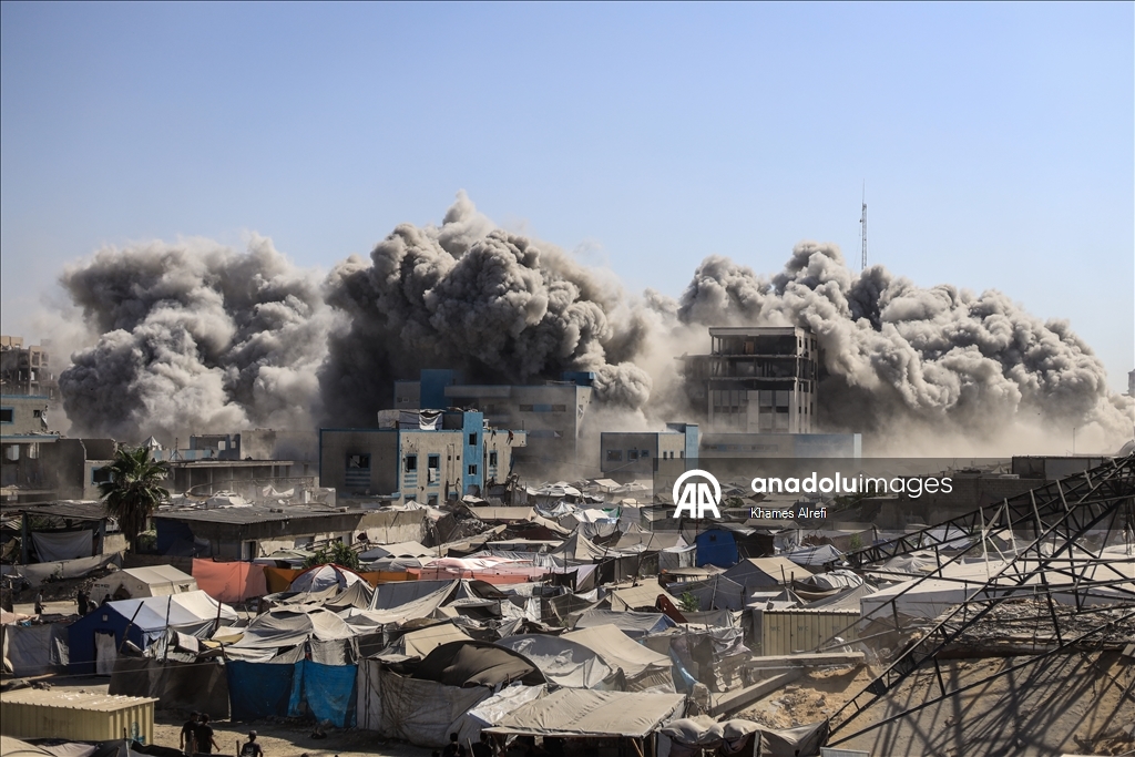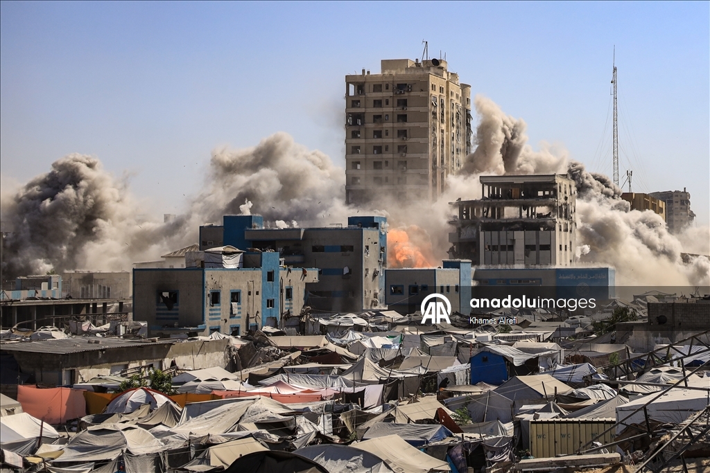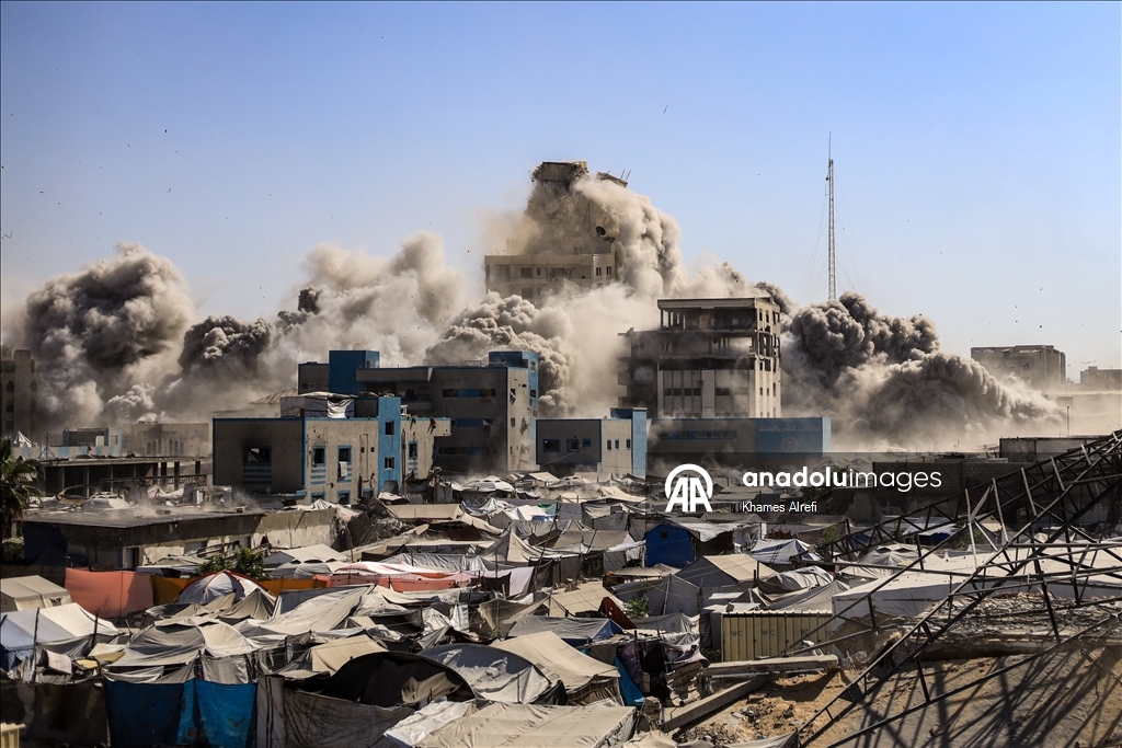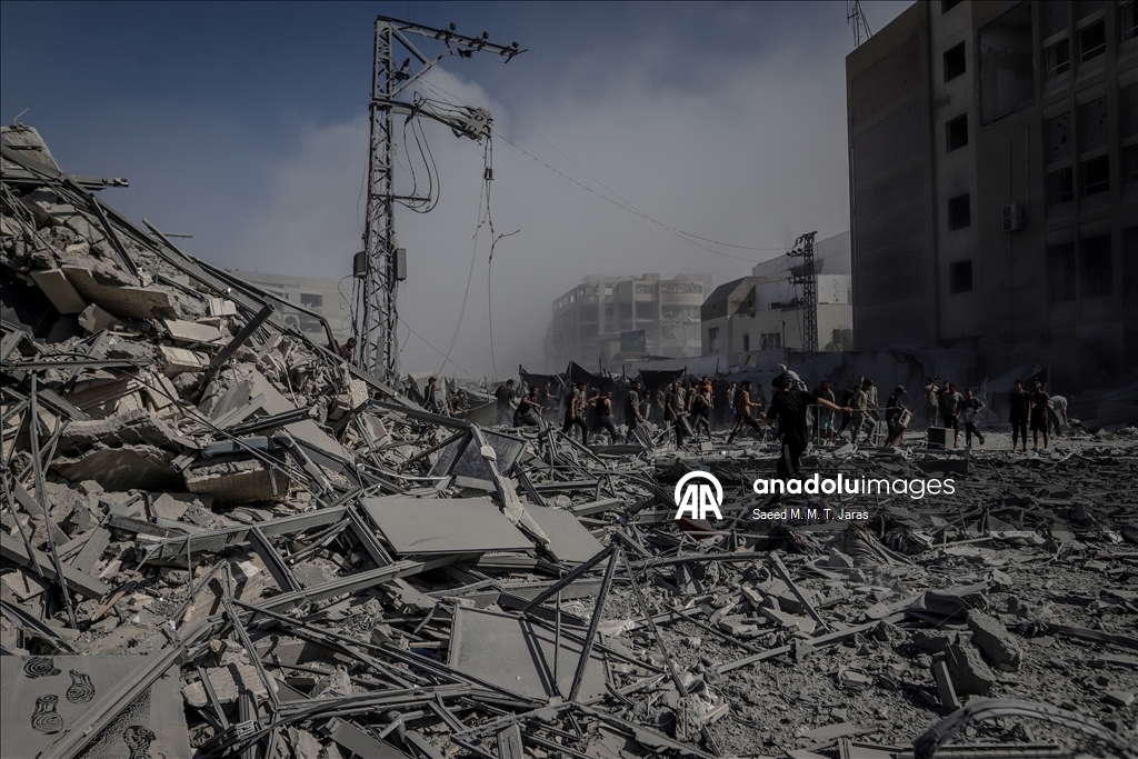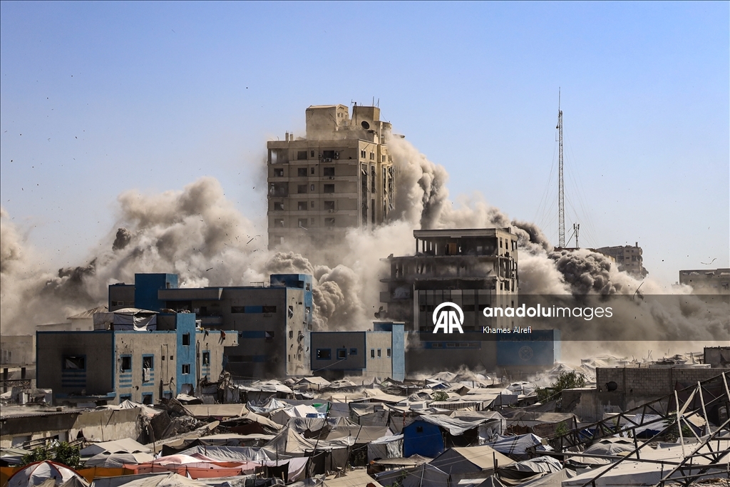 İsrail ordusu, Gazze kentinde “Al-Roya Kulesi” adıyla bilinen 7 katlı binayı hava saldırısıyla hedef aldı. Saldırıda kule tamamen yıkılırken, en az bir kişi hayatını kaybetti, çok sayıda kişi de yaralandı. Saldırı sonrası bölgeden dumanlar yükseldi. ( Khames Alrefi - Anadolu Ajansı )Khames Alrefi