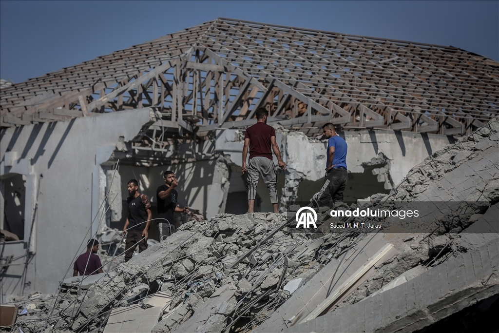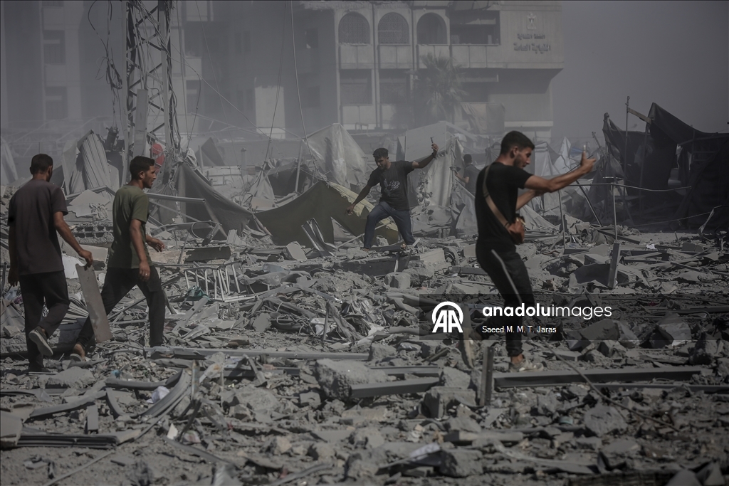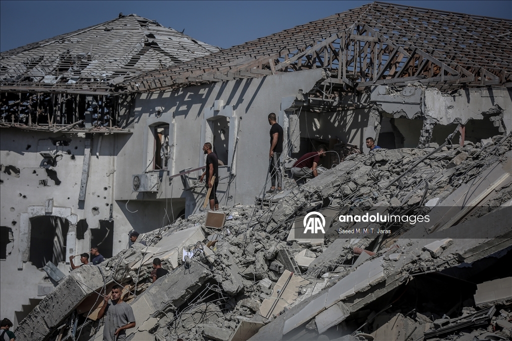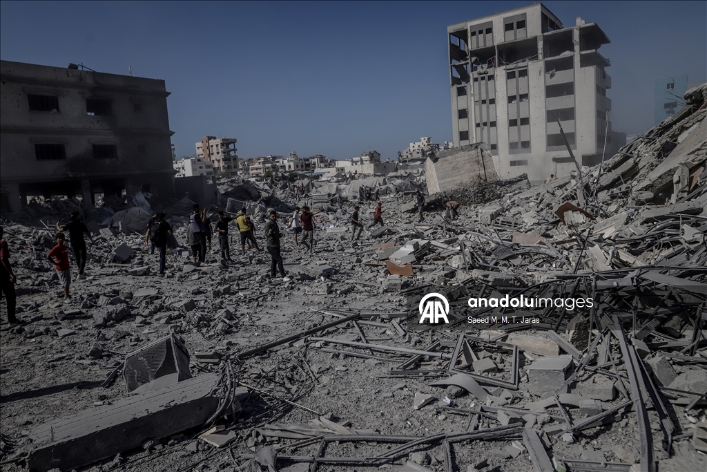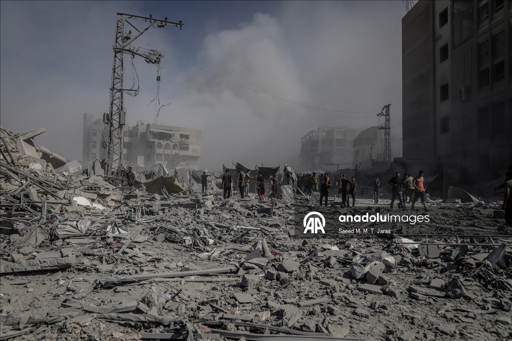 İsrail ordusu, Gazze kentinde “Al-Roya Kulesi” adıyla bilinen 7 katlı binayı hava saldırısıyla hedef aldı. Saldırıda kule tamamen yıkılırken, en az bir kişi hayatını kaybetti, çok sayıda kişi de yaralandı. Saldırı sonrası bölge sakini Filistinliler olay yerine gelerek incelemede bulundu. ( Saeed M. M. T. Jaras - Anadolu Ajansı )Saeed M. M. T. Jaras
