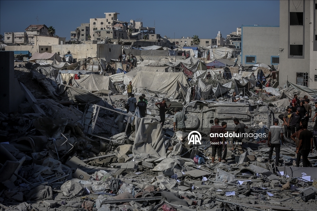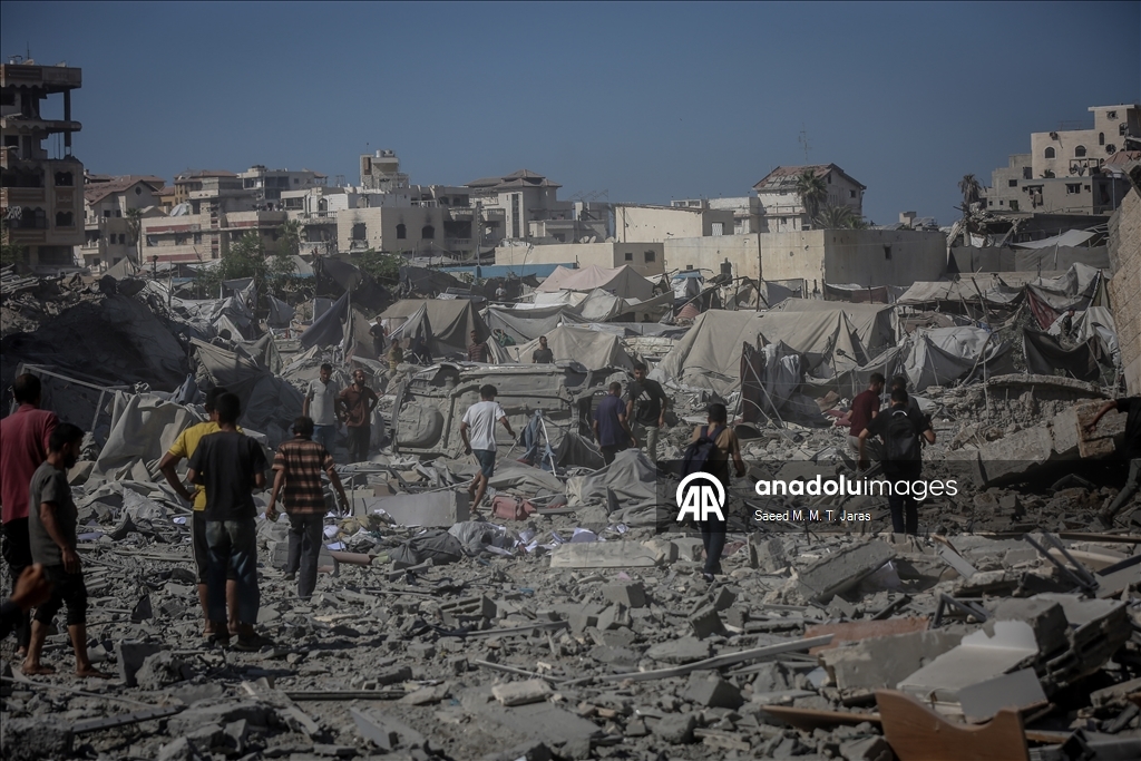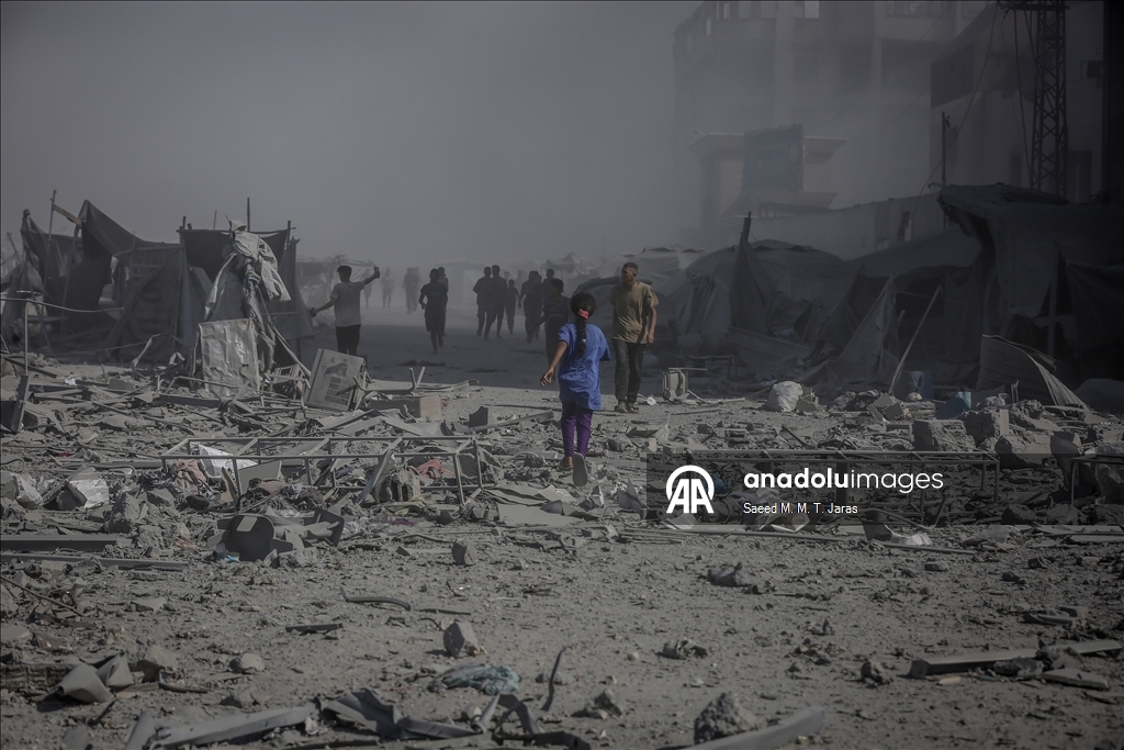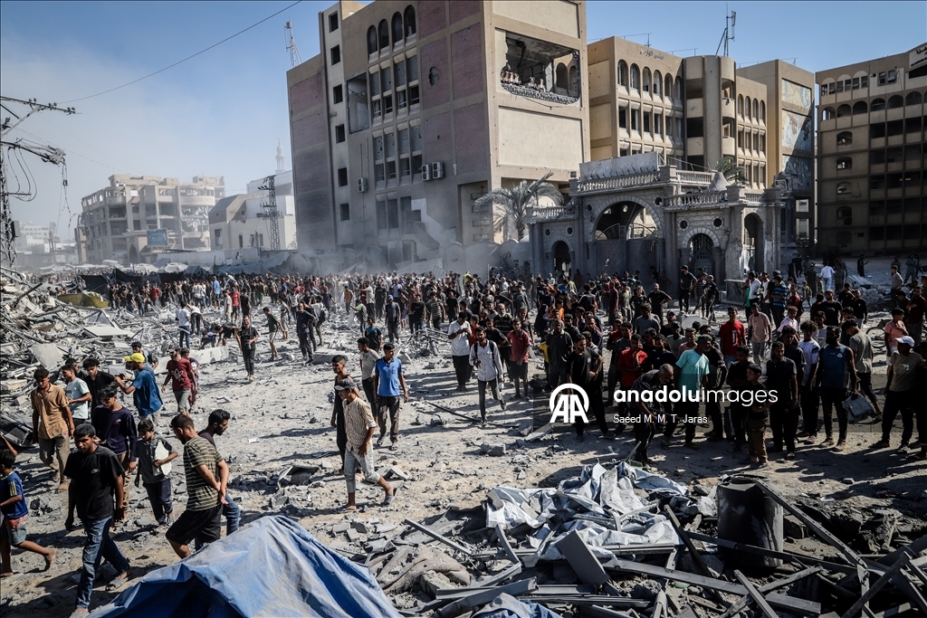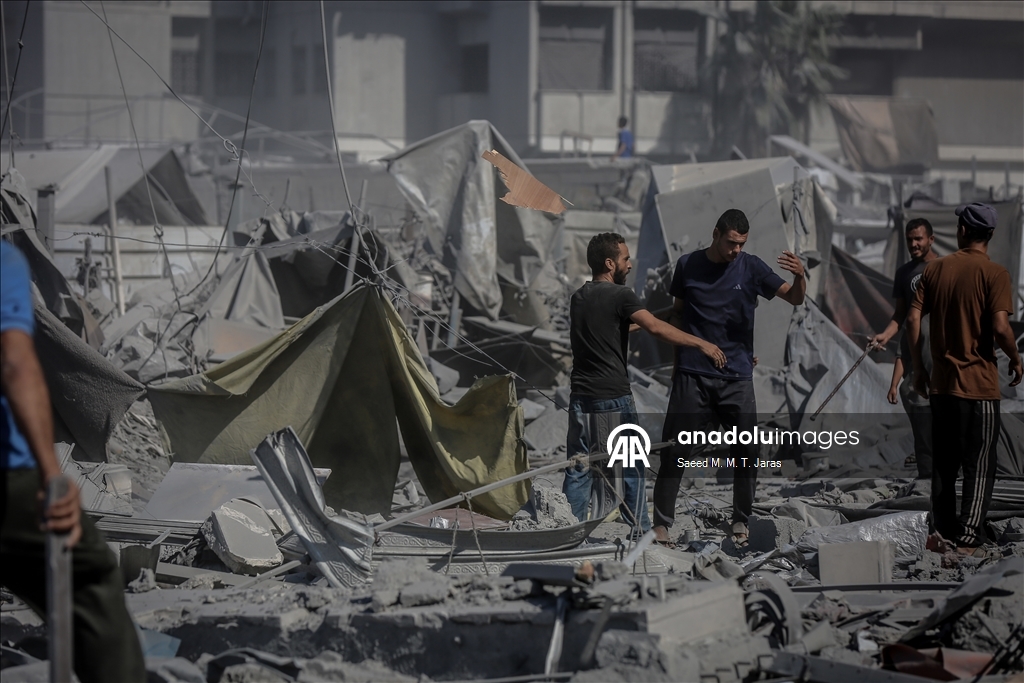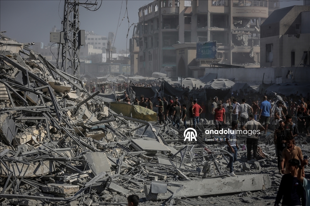 İsrail ordusu, Gazze kentinde “Al-Roya Kulesi” adıyla bilinen 7 katlı binayı hava saldırısıyla hedef aldı. Saldırıda kule tamamen yıkılırken, en az bir kişi hayatını kaybetti, çok sayıda kişi de yaralandı. Saldırı sonrası bölge sakini Filistinliler olay yerine gelerek incelemede bulundu. ( Saeed M. M. T. Jaras - Anadolu Ajansı )Saeed M. M. T. Jaras