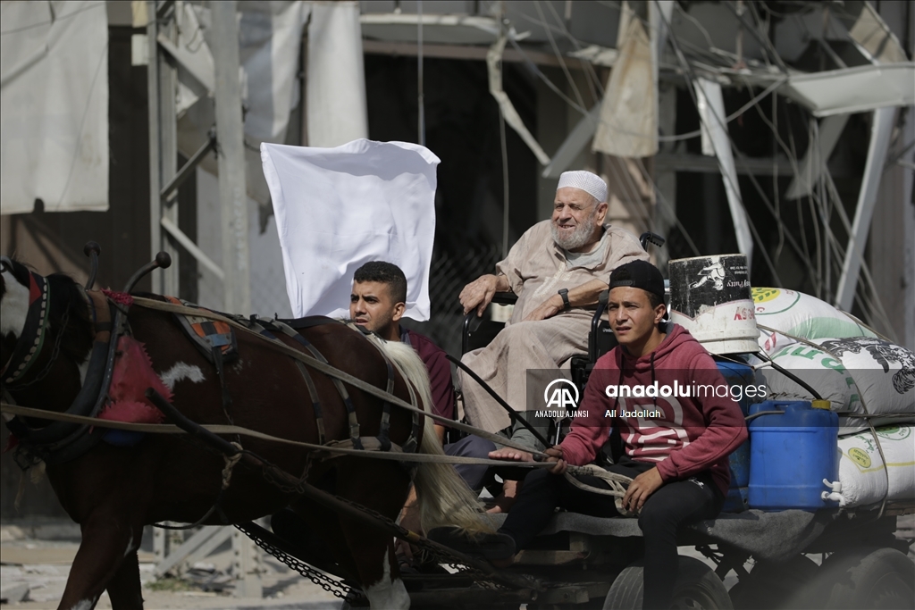 İsrail'in Gazze Şeridi'ne yönelik havadan, denizden ve karadan düzenlediği saldırılar 30. gününde devam ediyor. İsrail'in yoğun bombardımanına maruz kalan Gazze kentindeki Filistinliler, Gazze Şeridi'nin orta ve güney kesimlerindeki bölgelere göç etti. ( Ali Jadallah - Anadolu Ajansı )Ali Jadallah
