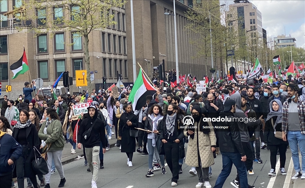 Hollanda'nın başkenti Amsterdam'da, Hollanda Filistinliler Komitesi (NPK) başta olmak üzere farklı grupların organizasyonuyla İsrail'in Doğu Kudüs ve Gazze'deki saldırıları protesto edildi. ( Selman Aksünger - Anadolu Ajansı )Selman Aksünger