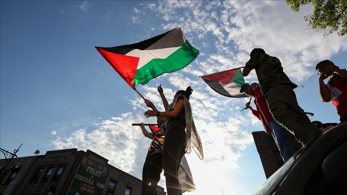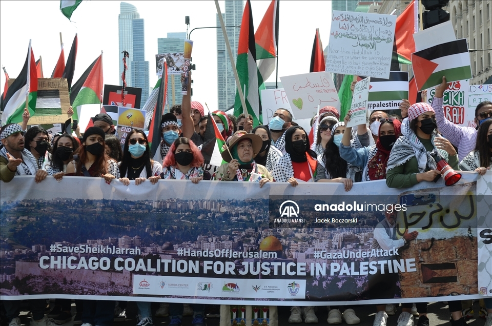 ABD'nin Chicago kentinde toplanan göstericiler, İsrail'in abluka altındaki Gazze Şeridi'ne ve Mescid-i Aksa'ya yönelik saldırılarını protesto etti. ( Jacek Boczarski - Anadolu Ajansı )Jacek Boczarski