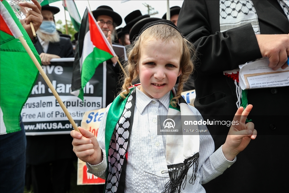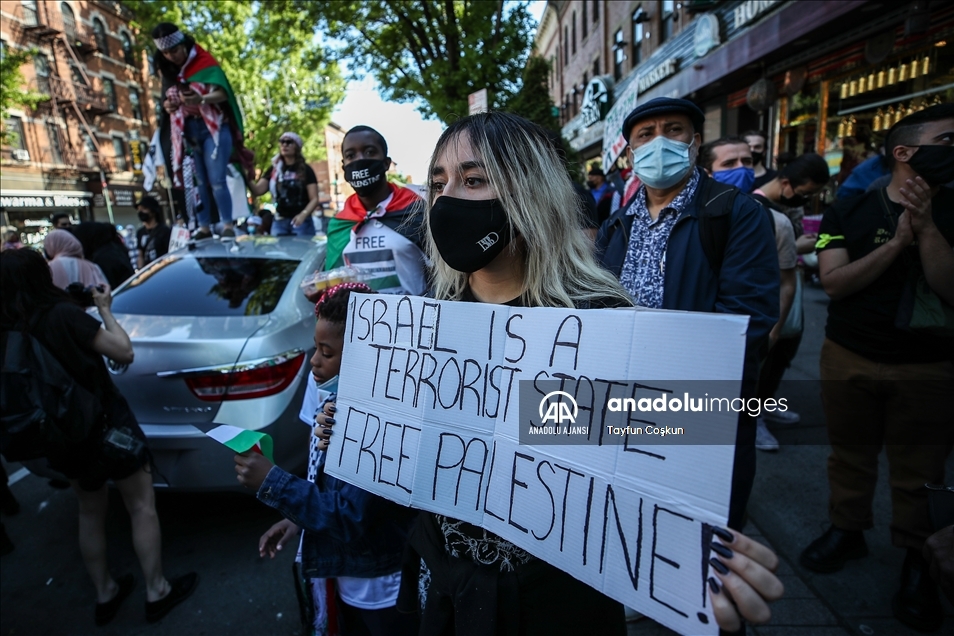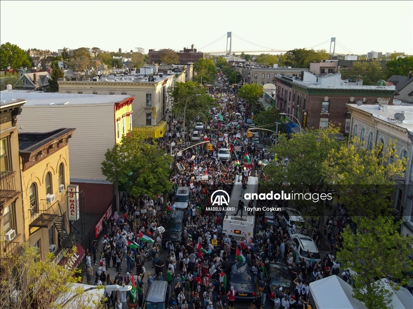 ABD'nin New York kentinin Brooklyn bölgesinde toplanan yüzlerce kişi, Filistin halkına destek mitingi düzenledi. New Yorklular, İsrail'in Gazze Şeridi'ne yönelik saldırılarını protesto etti. ( Tayfun Coşkun - Anadolu Ajansı )Tayfun Coşkun