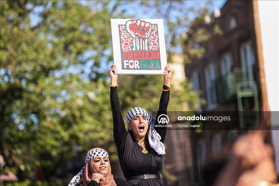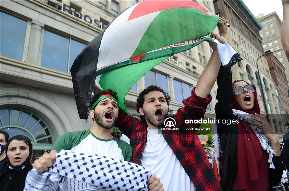 ABD'nin New York kentinde toplanan yüzlerce kişi, Filistin halkına destek mitingi düzenledi. New Yorklular, İsrail'in Gazze Şeridi'ne yönelik saldırılarını protesto etti. ( Tayfun Coşkun - Anadolu Ajansı )Tayfun Coşkun