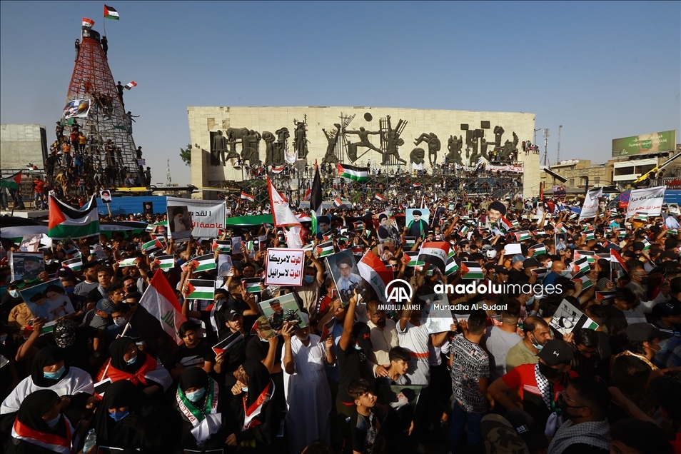 Irak’ta Sadr Hareketi'nin çağrısı üzerine başkent Bağdat'ta toplanan vatandaşlar, Filistin halkına destek mitingi düzenledi. Iraklılar, İsrail'in Gazze Şeridi'ne yönelik saldırılarını protesto etti. ( Murtadha Al-Sudani - Anadolu Ajansı )Murtadha Al-Sudani