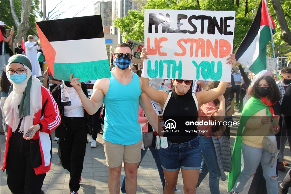 İsrail'in Doğu Kudüs ve Gazze'de Filistinlilere yönelik saldırıları, Kanada'da protesto edildi. Filistin'e destek veren binlerce Kanadalı, Hamilton ve Oakville kentlerinde düzenlenen İsrail karşıtı protestolarda bir araya geldi. Protestocular, Filistin halkına karşı işlenen insan hakları ihlalleri konusunda Kanada hükümeti ve Başbakan Justin Trudeau'nun sessiz kalmasına da tepki gösterdi. ( Seyit Aydoğan - Anadolu Ajansı )Seyit Aydoğan
