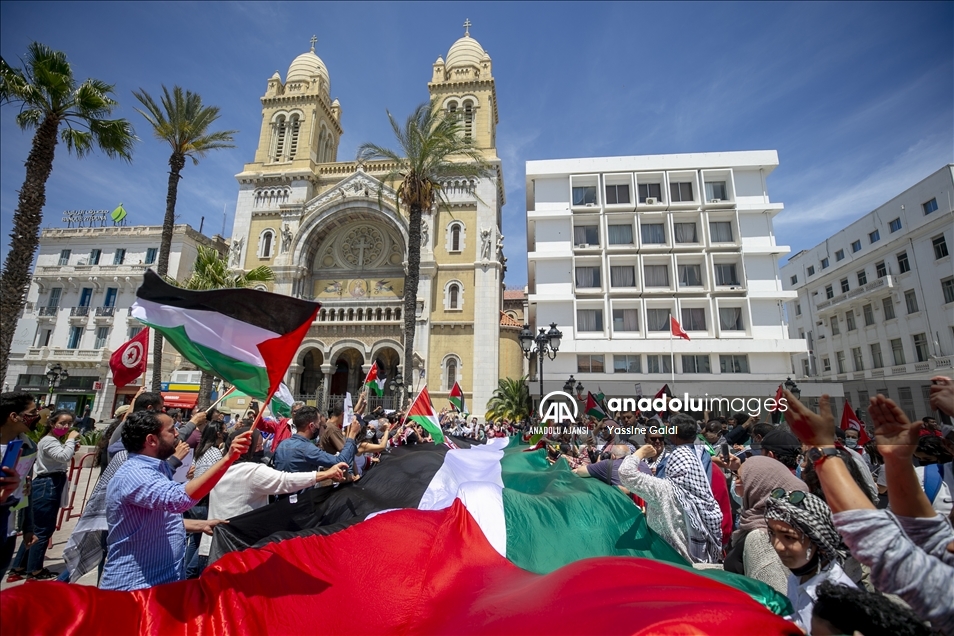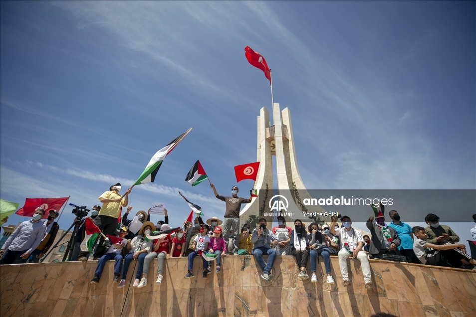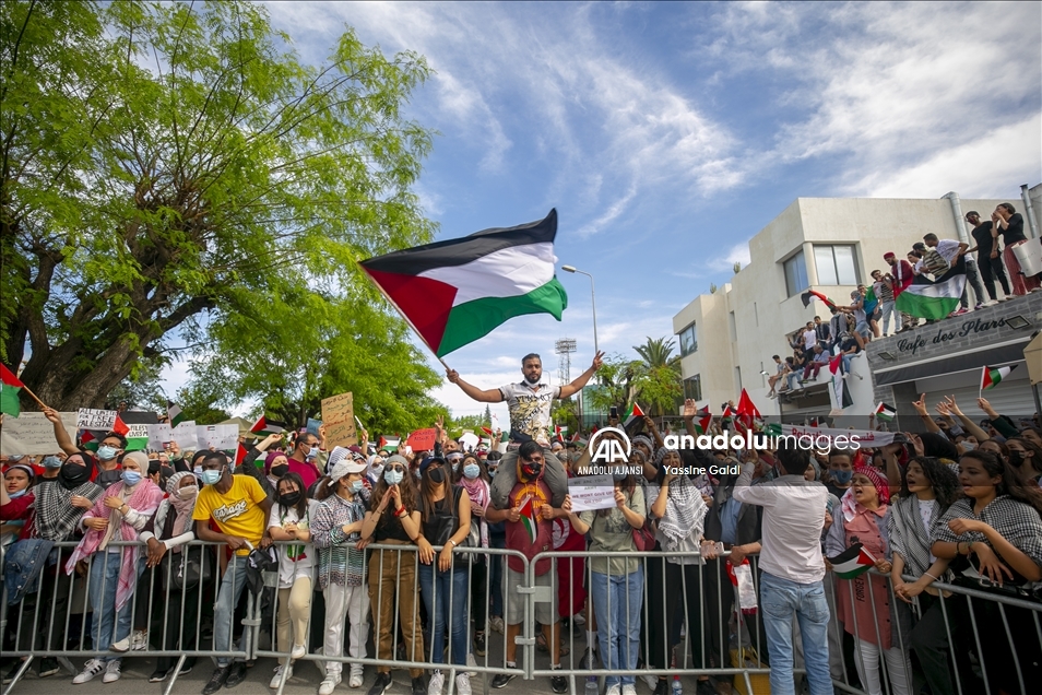 Tunus'un başkenti Tunus'ta toplanan bir grup, Filistin halkına destek mitingi düzenledi. Tunuslular, İsrail'in Gazze Şeridi'ne yönelik saldırılarını protesto etti. ( Yassine Gaidi - Anadolu Ajansı )Yassine Gaidi