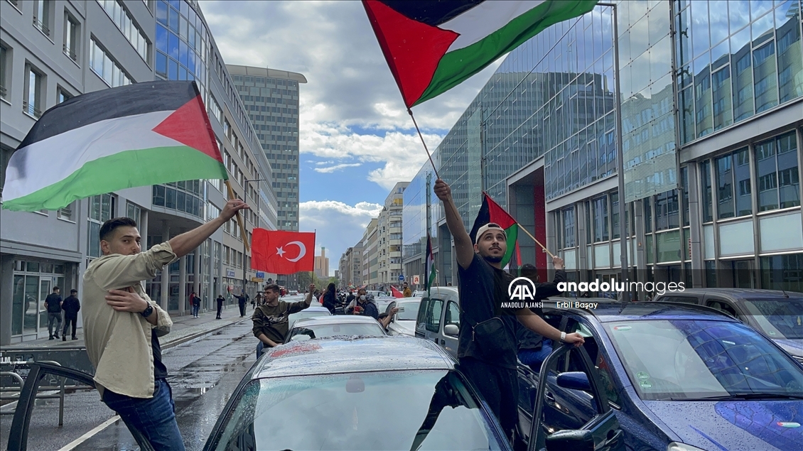 Almanya'nın başkenti Berlin'de, İsrail'in Mescid-i Aksa, Doğu Kudüs ve Gazze Şeridi'nde Filistinlilere yönelik saldırıları araç konvoyu oluşturularak protesto edildi. ( Erbil Başay - Anadolu Ajansı )Erbil Başay