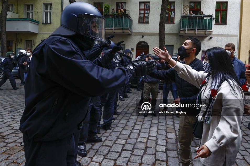 Almanya’nın başkenti Berlin’de, İsrail'in Mescid-i Aksa'ya ve Filistinlilere yönelik saldırılarına karşı protesto düzenlendi. Polis, protestoya katılan vatandaşlara sert müdahalede bulundu. ( Abdulhamid Hoşbaş - Anadolu Ajansı )Abdulhamid Hoşbaş