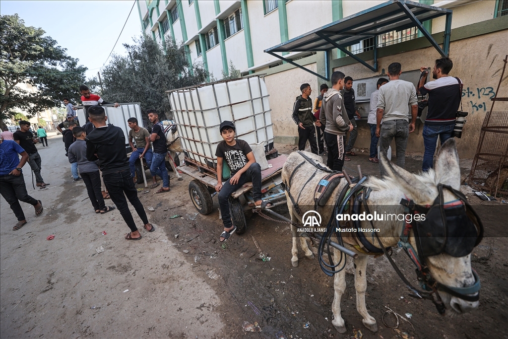 İsrail'den Gazze Şeridi'ne giden su borularındaki su akışının durdurulması sonucu kentte yaşanan su krizi devam ediyor. Han Yunus kentindeki Filistinliler, bir su deposunun önünde uzun kuyruklar oluşturdu. İsrail ordusu abluka altındaki Gazze’ye yönelik yoğun bombardımanını 7 Ekim'den bu yana sürdürürken, bölgedeki insani kriz derinleşmeye devam ediyor. ( Mustafa Hassona - Anadolu Ajansı )Mustafa Hassona