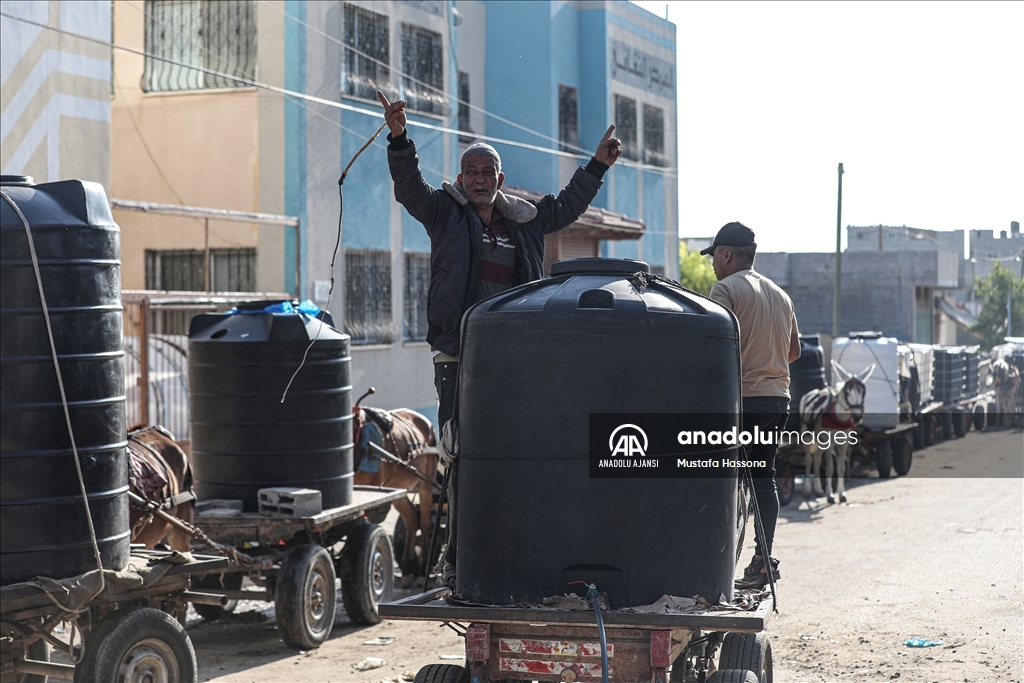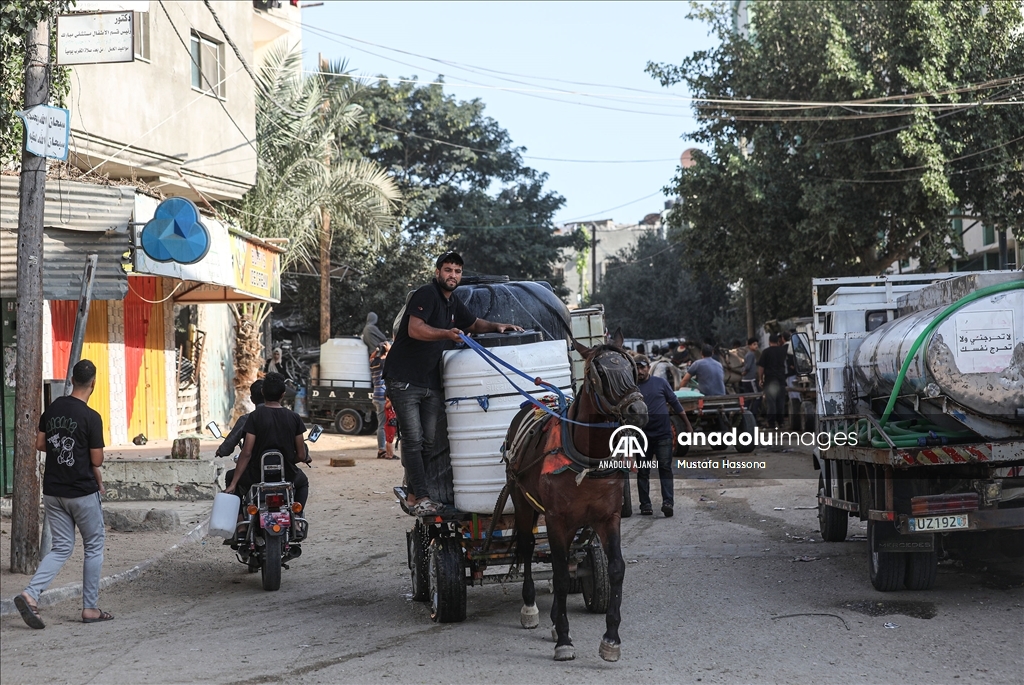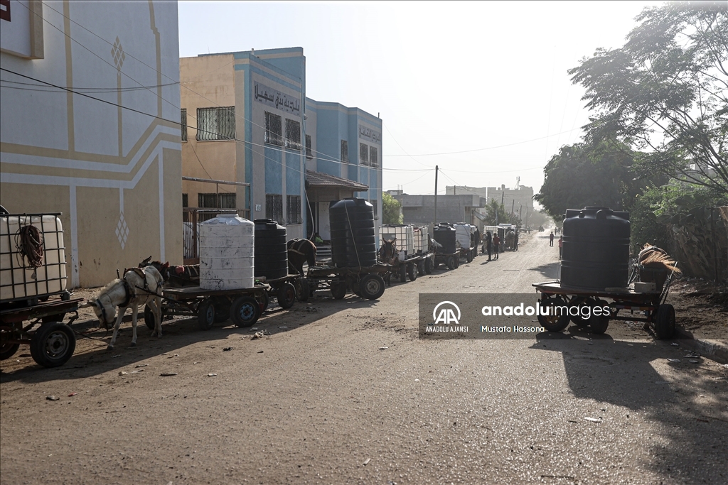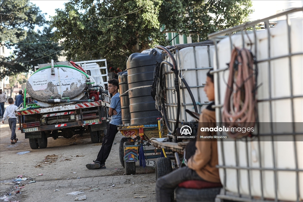 İsrail'den Gazze Şeridi'ne giden su borularındaki su akışının durdurulması sonucu kentte yaşanan su krizi devam ediyor. Han Yunus kentindeki Filistinliler, bir su deposunun önünde uzun kuyruklar oluşturdu.