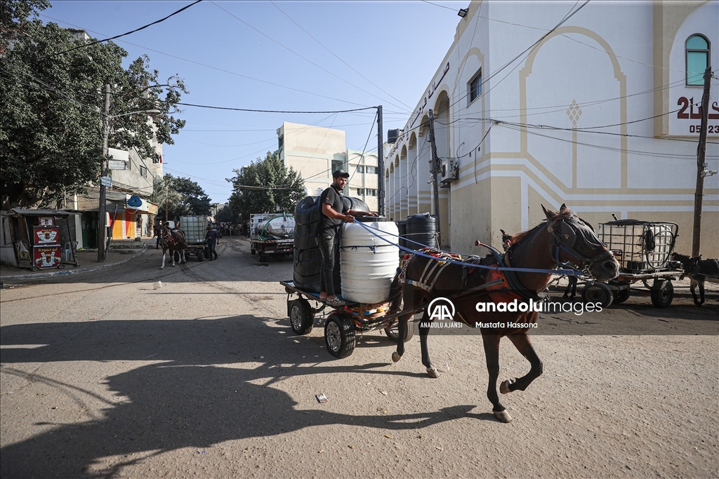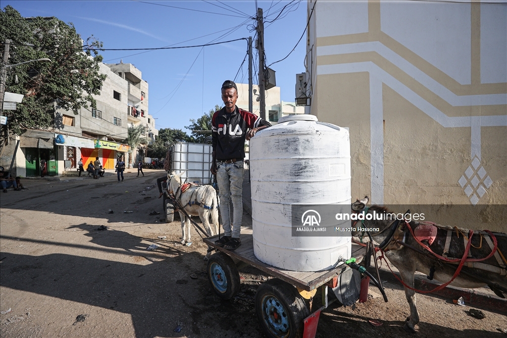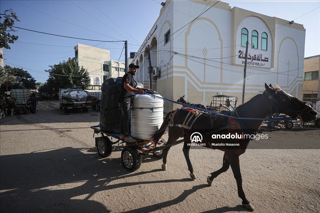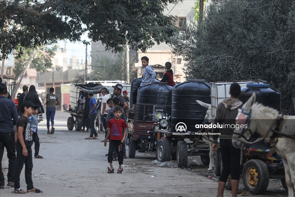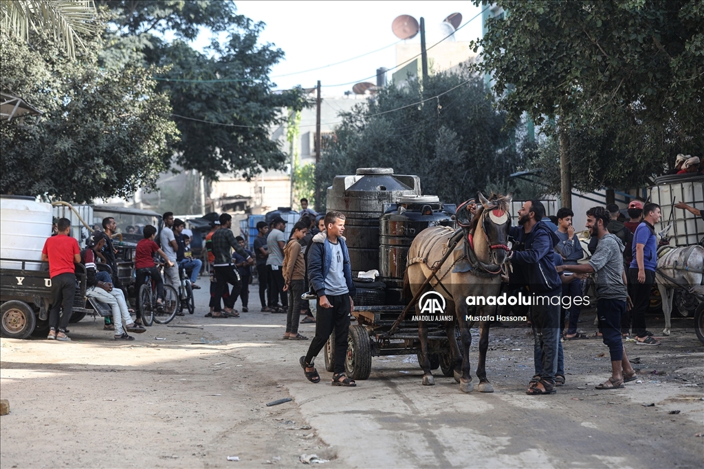 İsrail'den Gazze Şeridi'ne giden su borularındaki su akışının durdurulması sonucu kentte yaşanan su krizi devam ediyor. Han Yunus kentindeki Filistinliler, bir su deposunun önünde uzun kuyruklar oluşturdu.