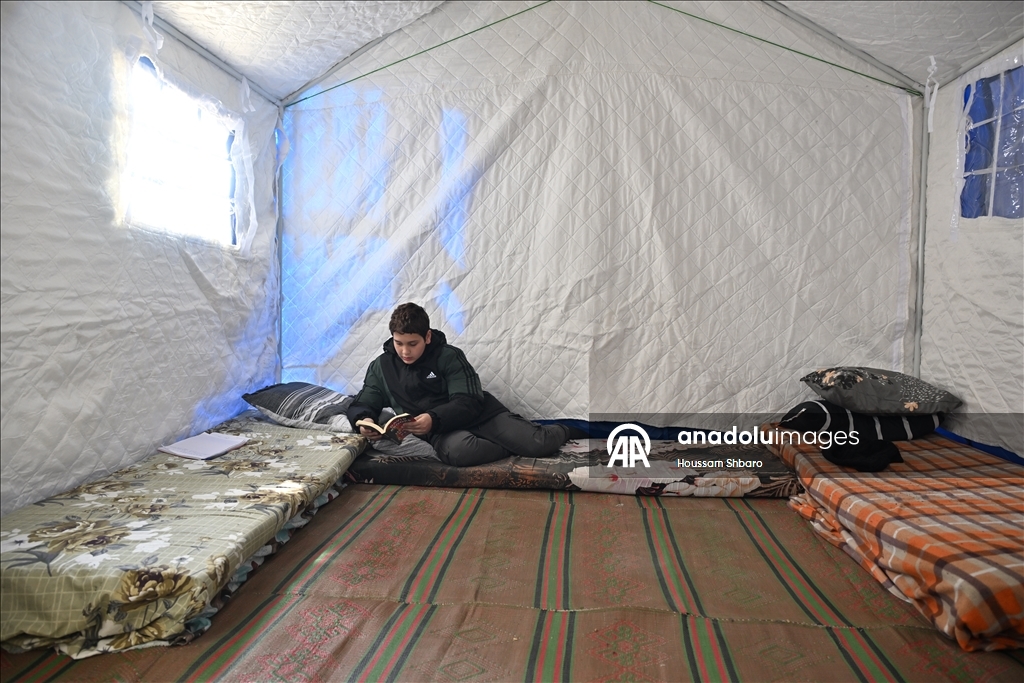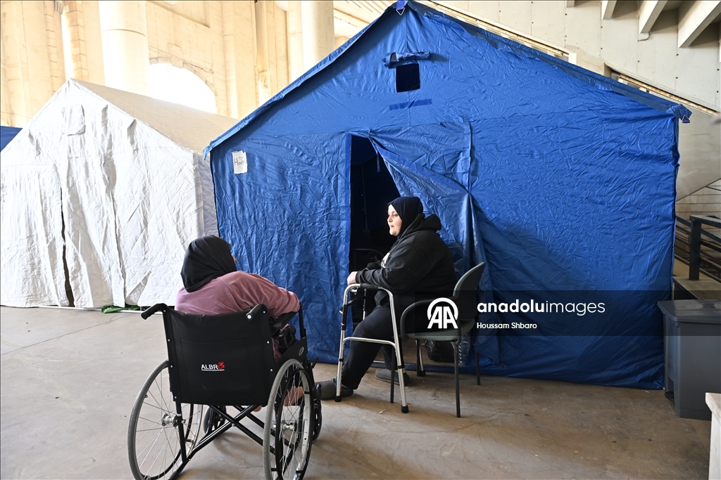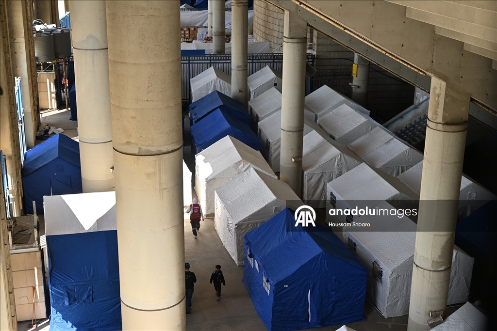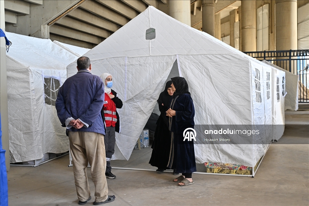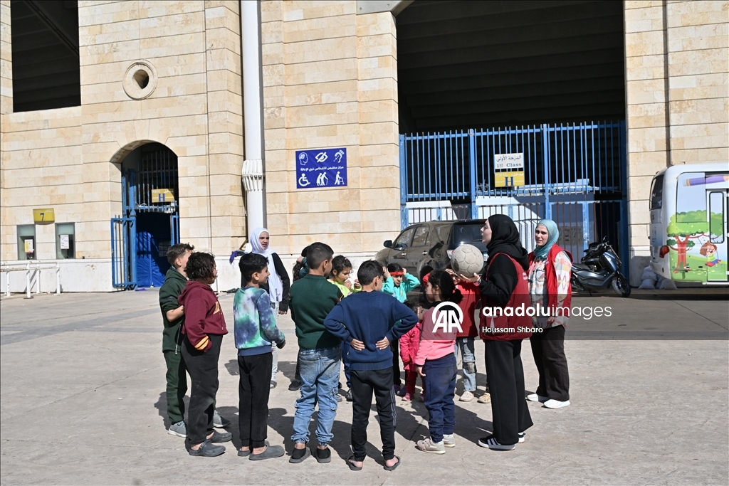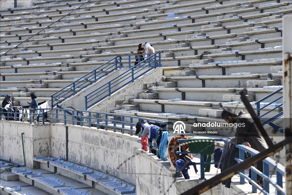 Bir zamanlar büyük spor karşılaşmaları ve kitlesel etkinliklerle anılan stadyum, bugün güvenlik arayışıyla evlerini terk etmek zorunda kalan ailelere ev sahipliği yapıyor. ( Houssam Shbaro - Anadolu Ajansı )Houssam Shbaro