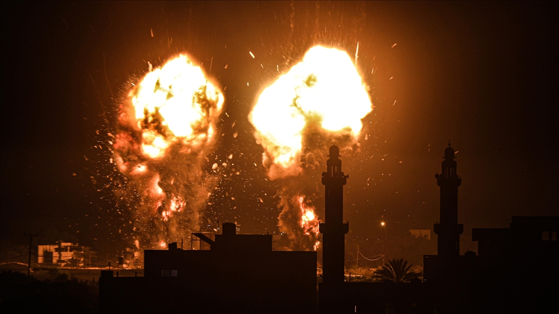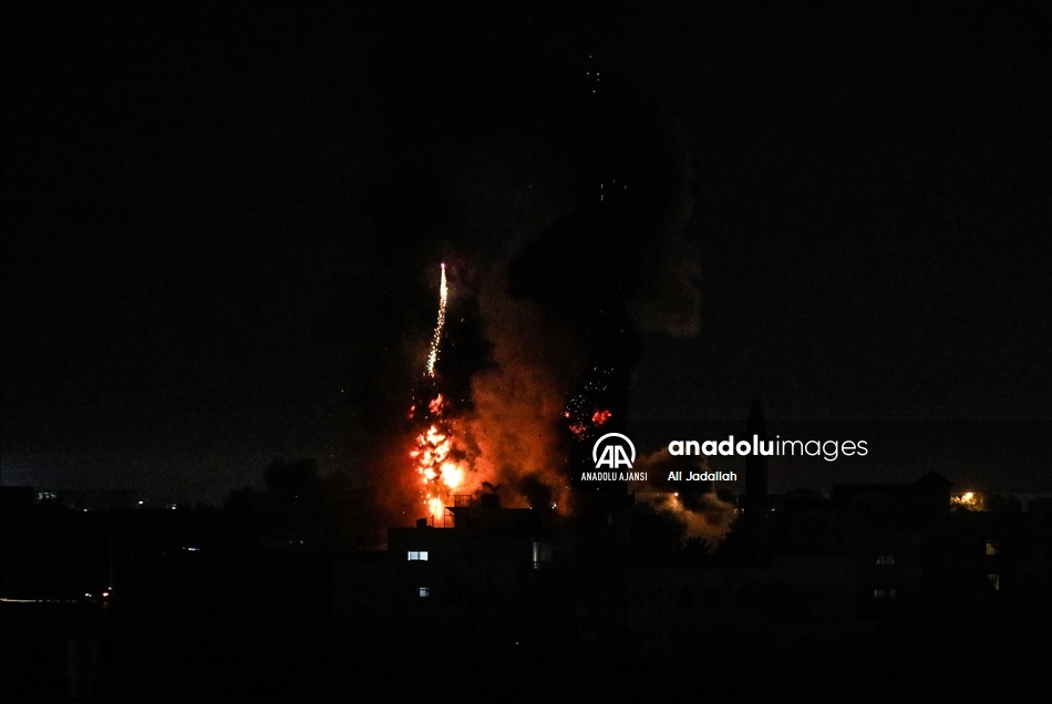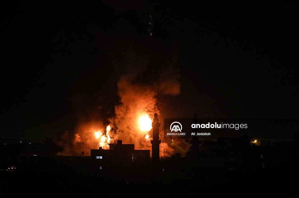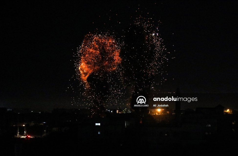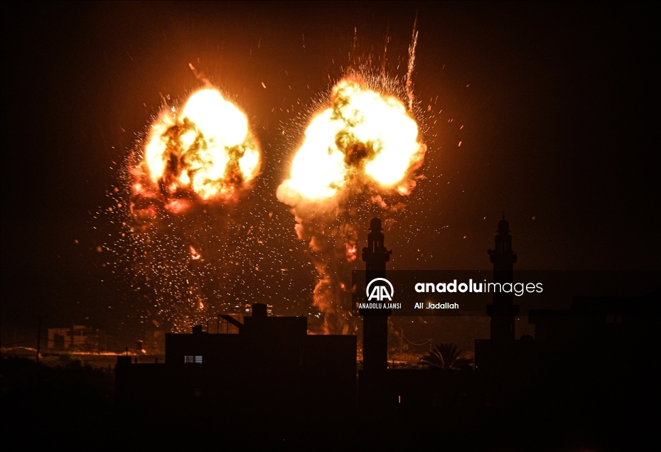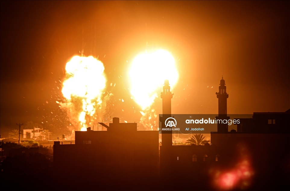 İsrail savaş uçakları, Gazze Şeridi'nde Hamas'a ait hedeflere hava saldırısı düzenledi. Saldırı sonrası bölgeden alevler yükseldi. ( Ali Jadallah - Anadolu Ajansı )Ali Jadallah