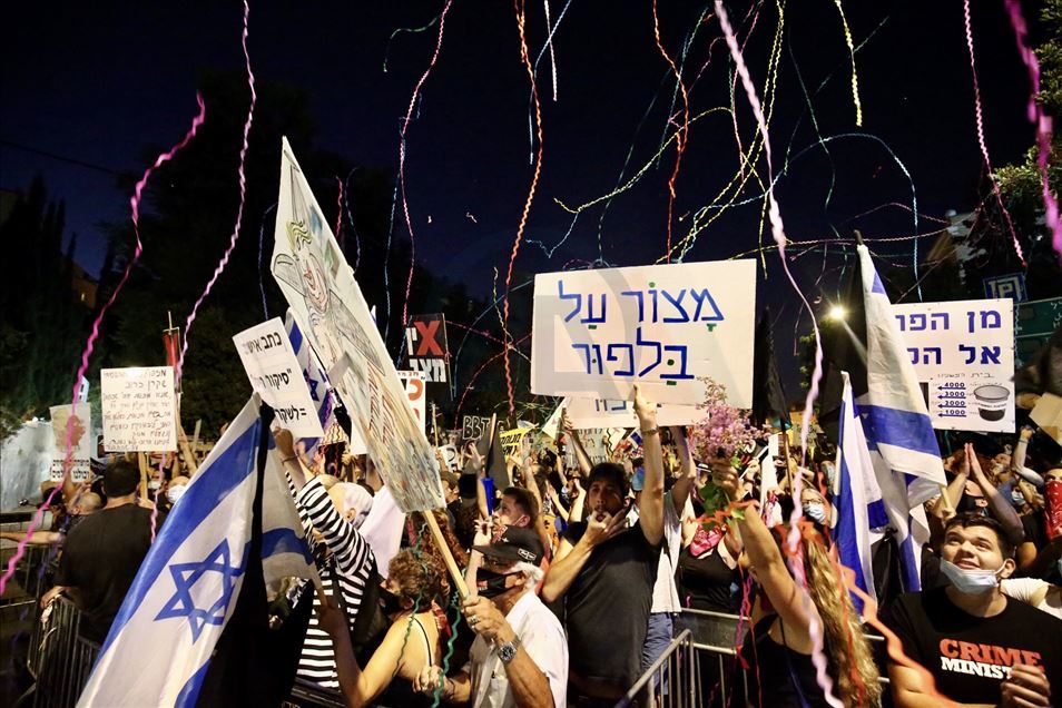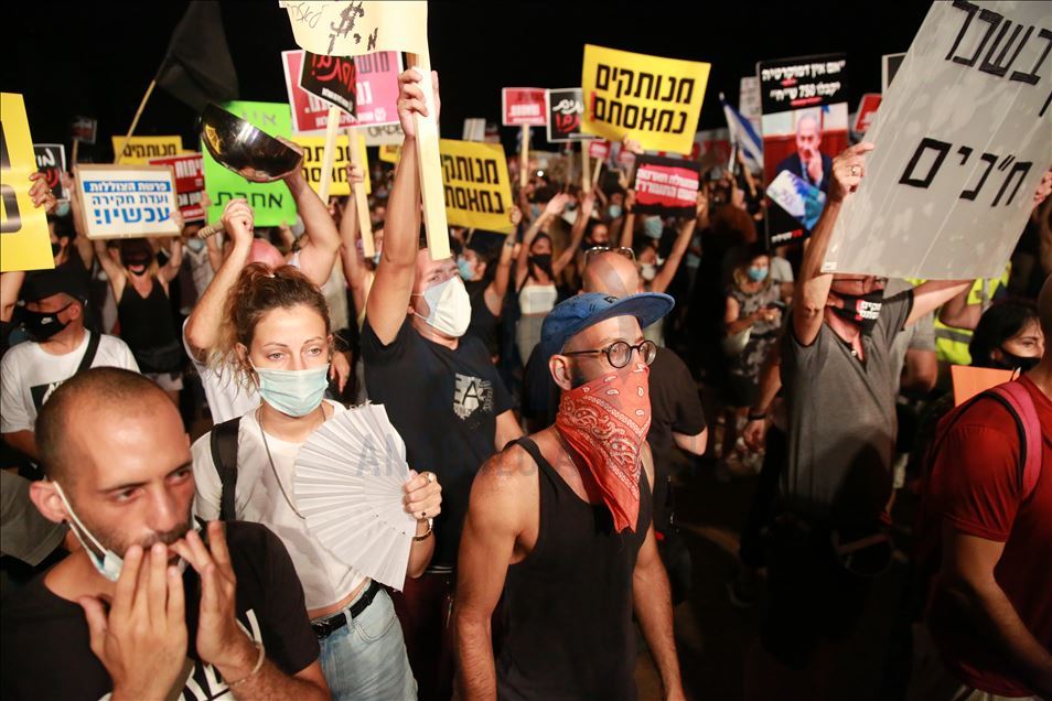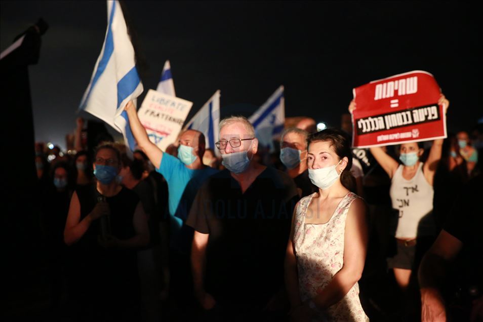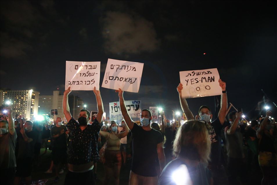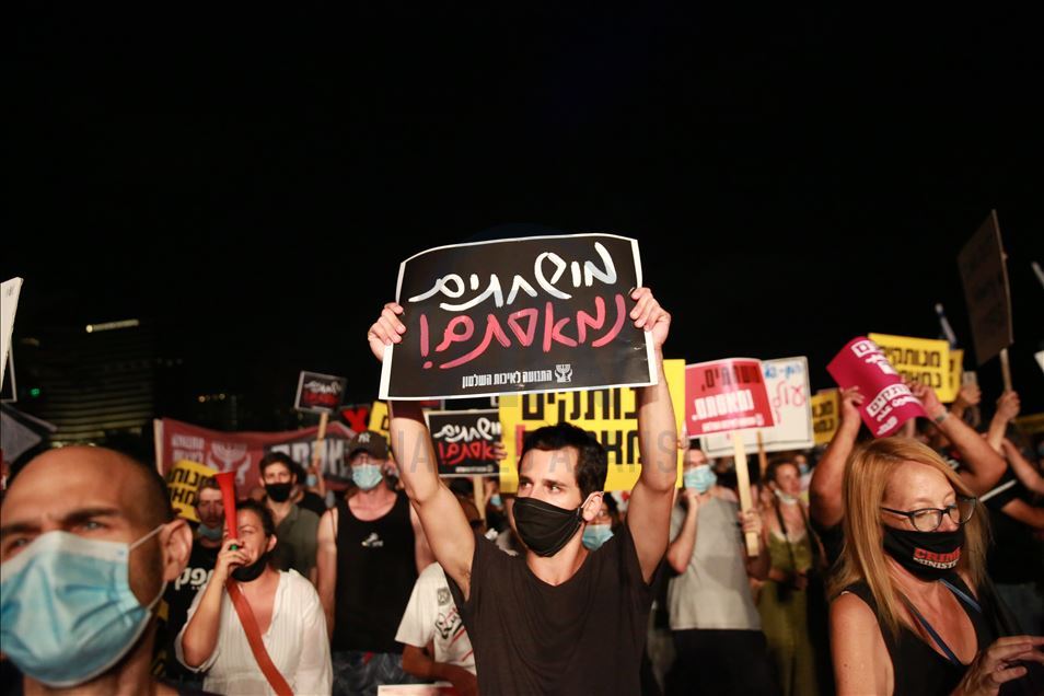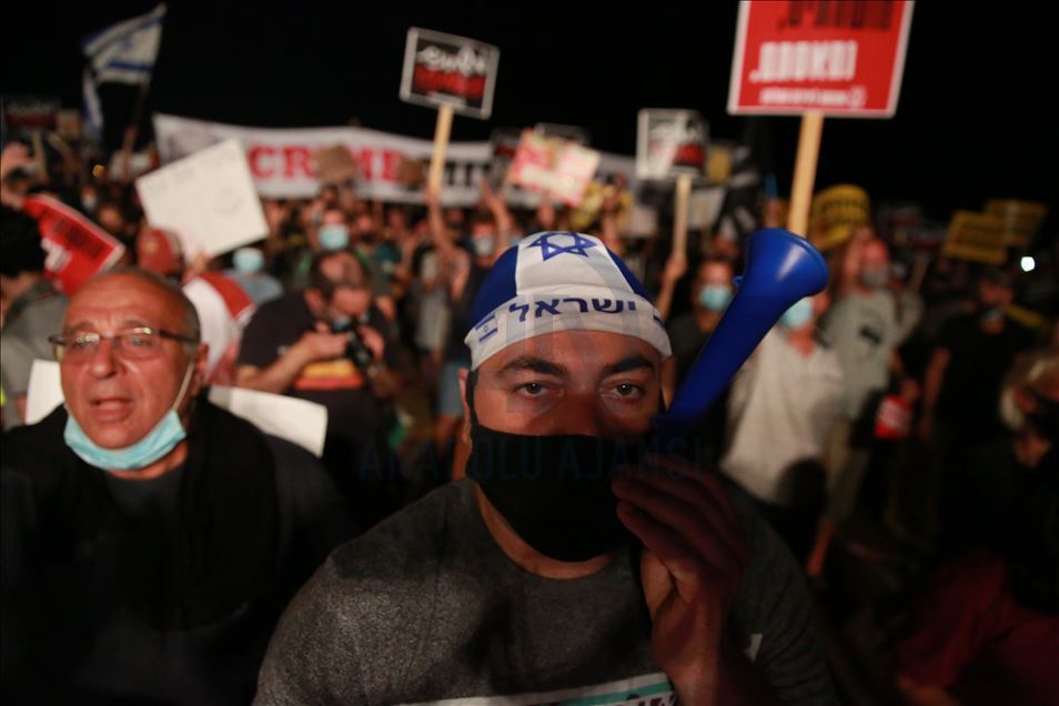 İsrailliler, hem yeni tip koronavirüs (Kovid-19) salgınıyla mücadelede başarısız olduğu gerekçesiyle hem de hakkındaki yolsuzluk davası nedeniyle Başbakan Binyamin Netanyahu'nun istifası için Tel Aviv ve Batı Kudüs'te gösteri düzenledi.