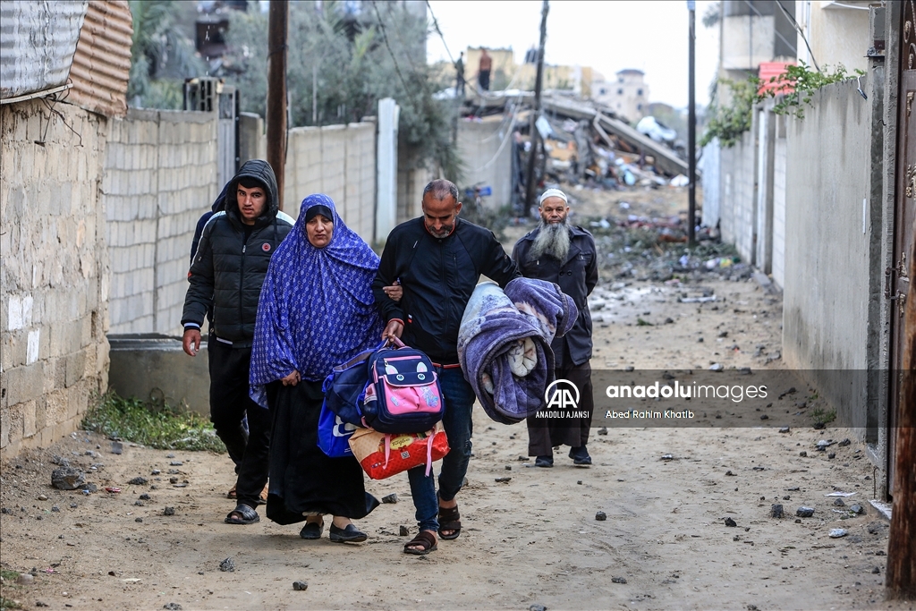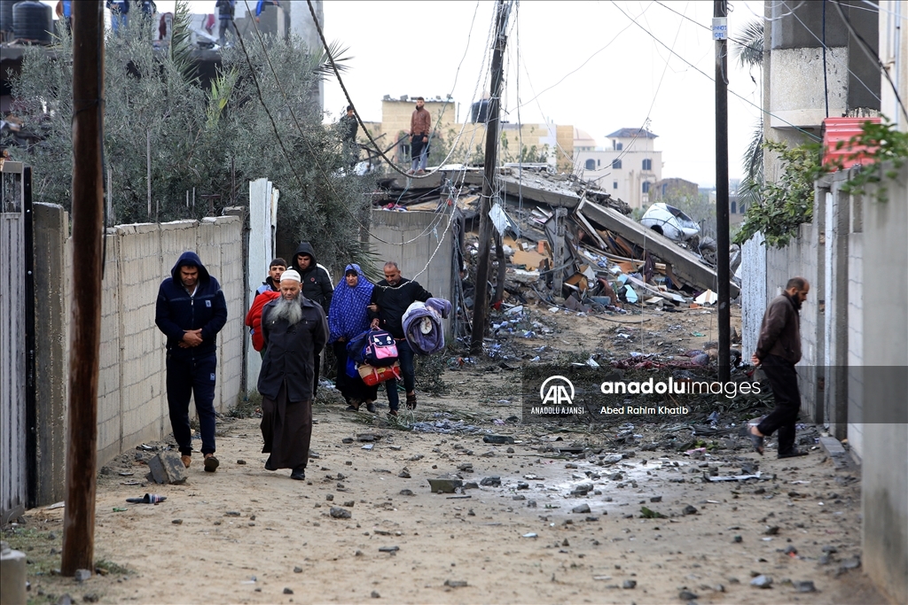 İsrail ordusunun Gazze Şeridi'ne devam eden saldırıları 45. gününde de artarak sürüyor. Refah kentine düzenlenen saldırılarda bazı binalarda ağır hasar meydana geldi. Saldırının ardından bazı bölge sakinni, eşyalarını alarak bölgeden uzaklaştı. ( Abed Rahim Khatib - Anadolu Ajansı )Abed Rahim Khatib