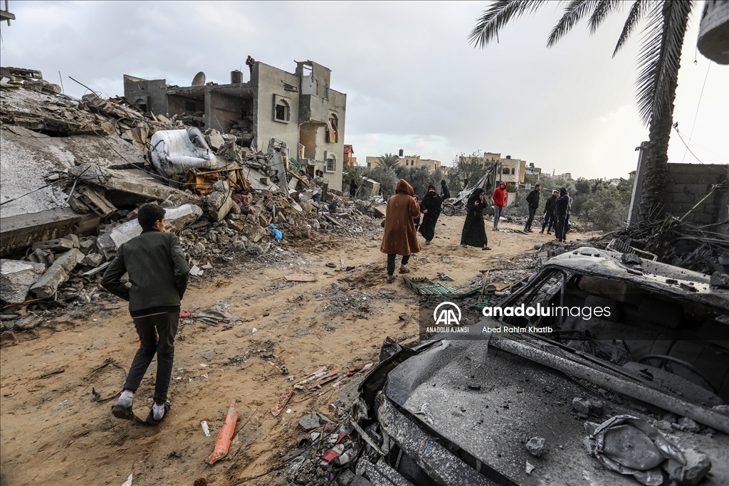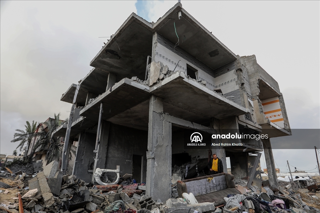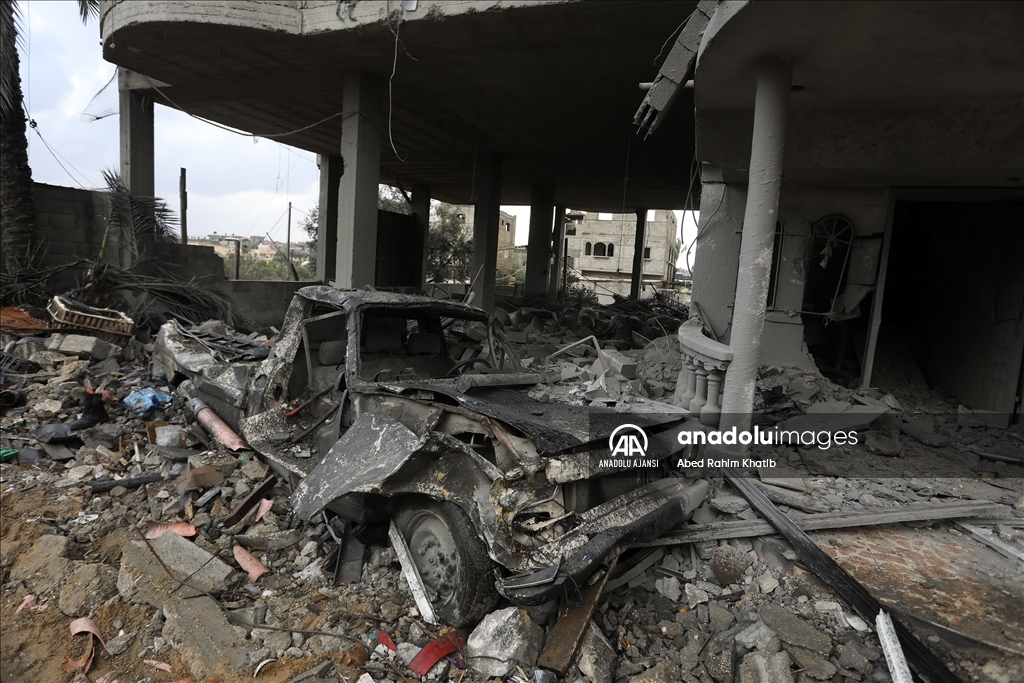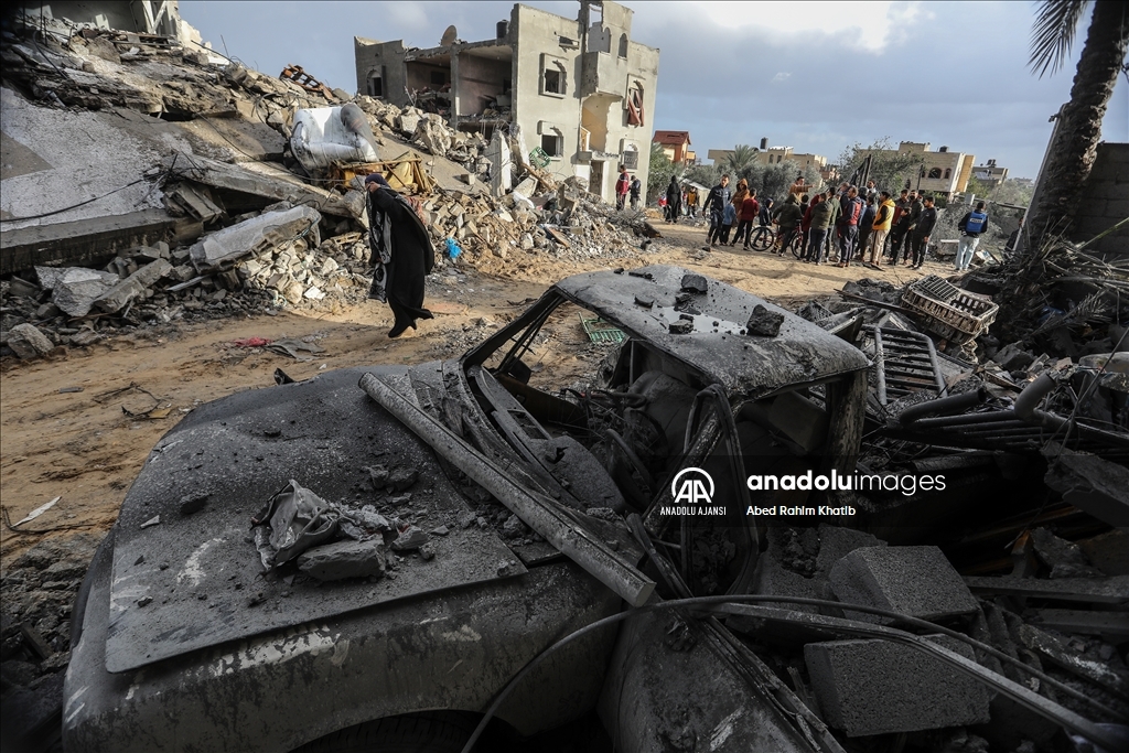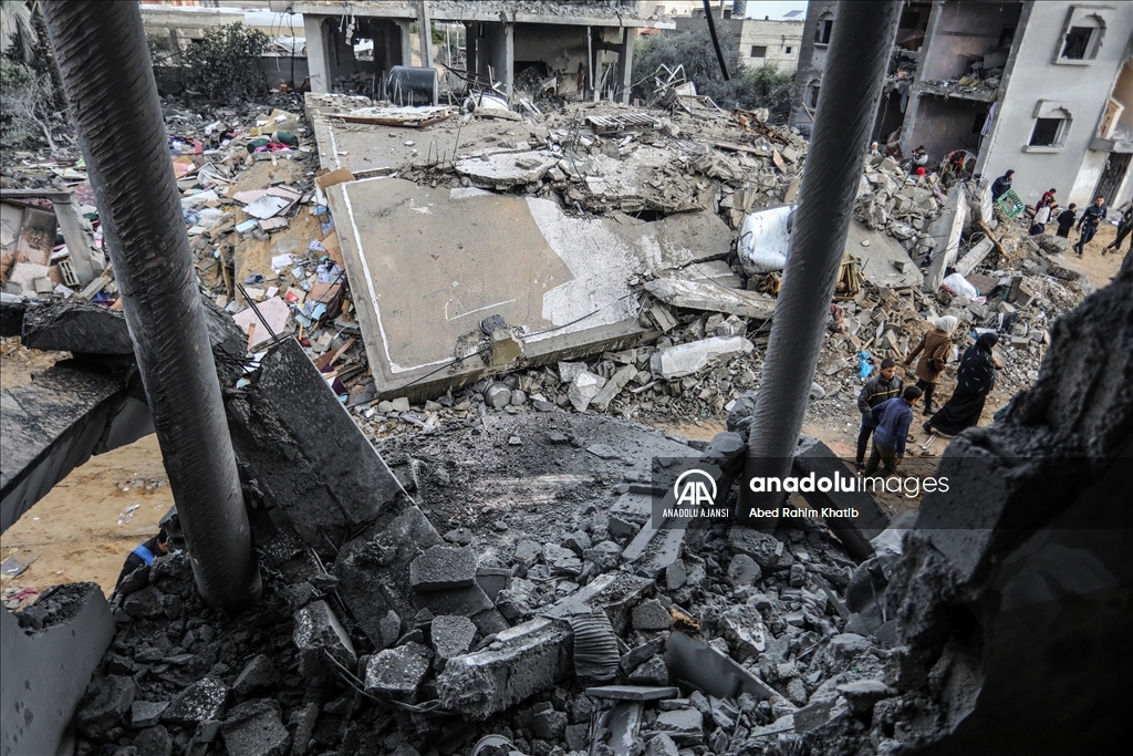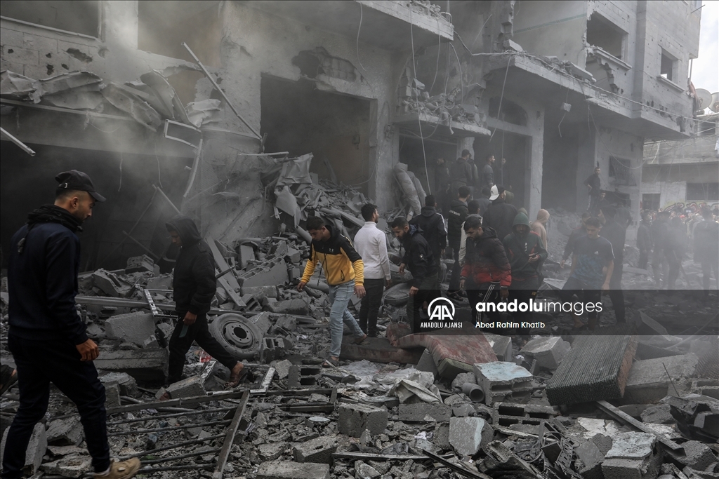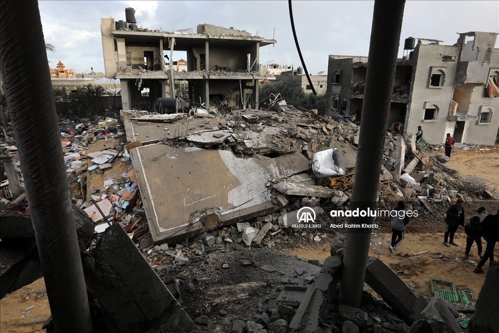İsrail ordusunun Gazze Şeridi'ne devam eden saldırıları 45. gününde de artarak sürüyor. Refah kentine düzenlenen saldırılarda bazı binalar tamamen yıkılırken bir çok bina da kullanılamaz hale geldi. ( Abed Rahim Khatib - Anadolu Ajansı )Abed Rahim Khatib