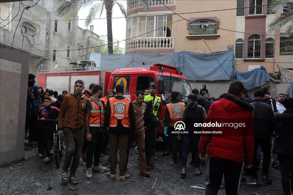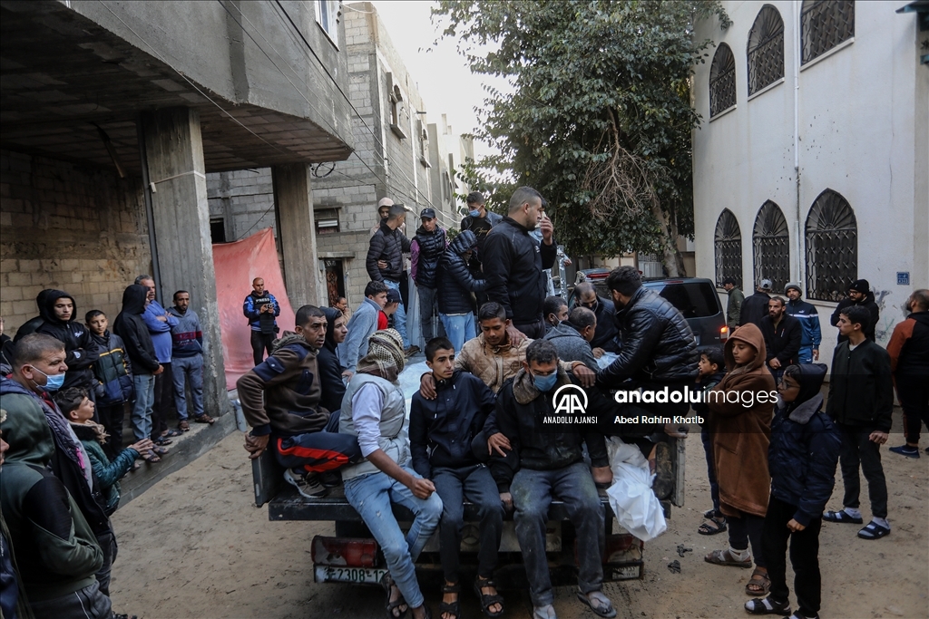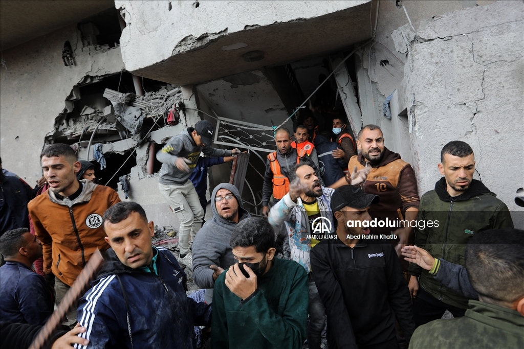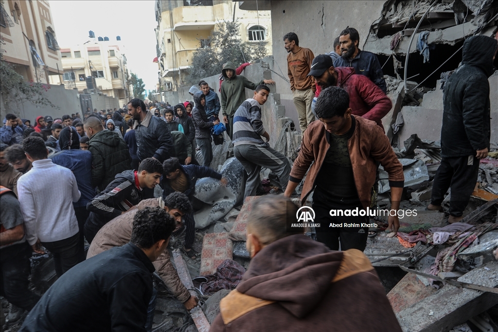 İsrail ordusunun Gazze Şeridi'ne devam eden saldırıları 45. gününde de artarak sürüyor. Gazze'nin Refah kentindeki Ebu Rabea ailesine ait bir binaya düzenlenen saldırı sonucu ölü ve yaralıların olduğu bildirildi. Sivil savunma ekipleri ve bölge halkı, yıkılan binanın enkazında arama kurtarma çalışması yaptı. Saldırı sonucu yaralanan Filistinliler, bölgeden uzaklaştırıldı. ( Abed Rahim Khatib - Anadolu Ajansı )Abed Rahim Khatib