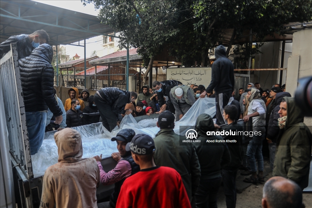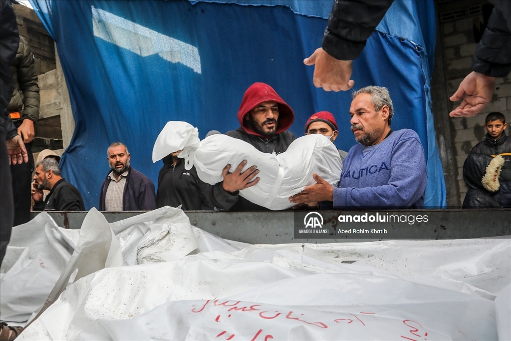 İsrail ordusunun Gazze Şeridi'ne saldırıları 45. gününde artarak sürüyor. Saldırılarda hayatını kaybedenlerin naaşları, yakınları tarafından toprağa verilmek üzere Gazze'nin Refah kentindeki En-Neccar Hastanesi morgundan teslim alındı. ( Abed Rahim Khatib - Anadolu Ajansı )Abed Rahim Khatib