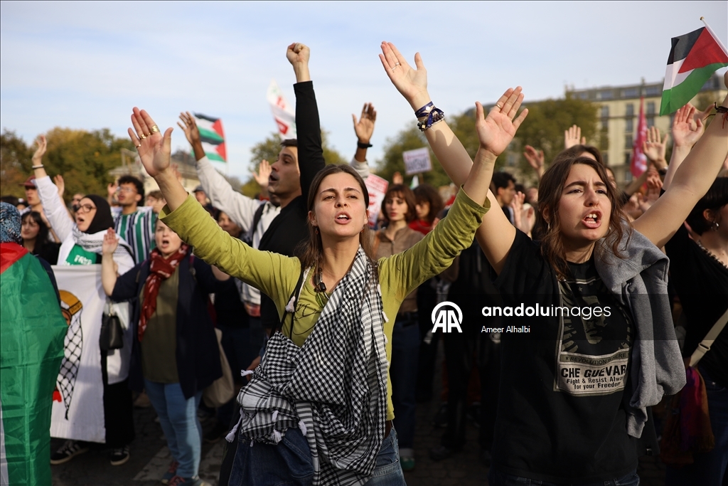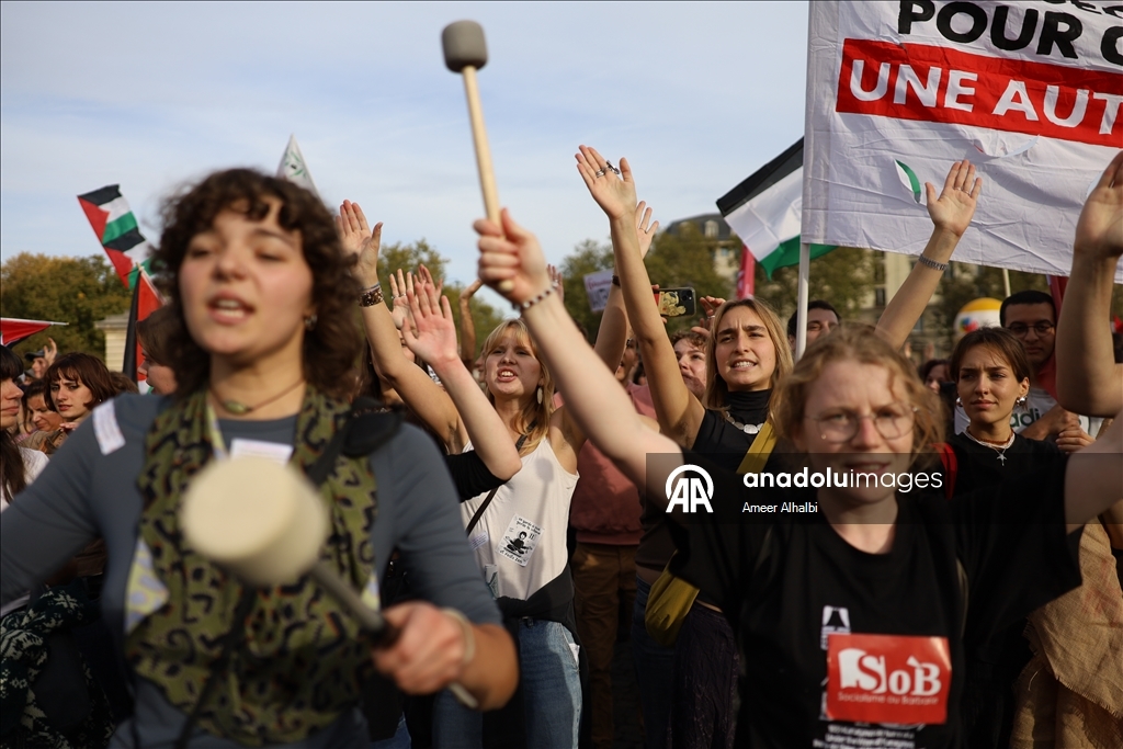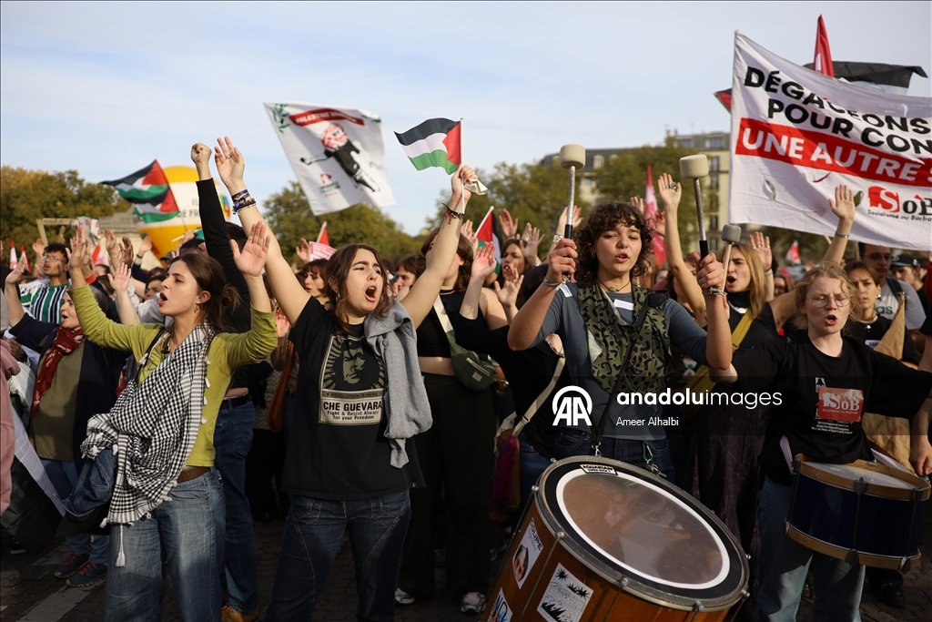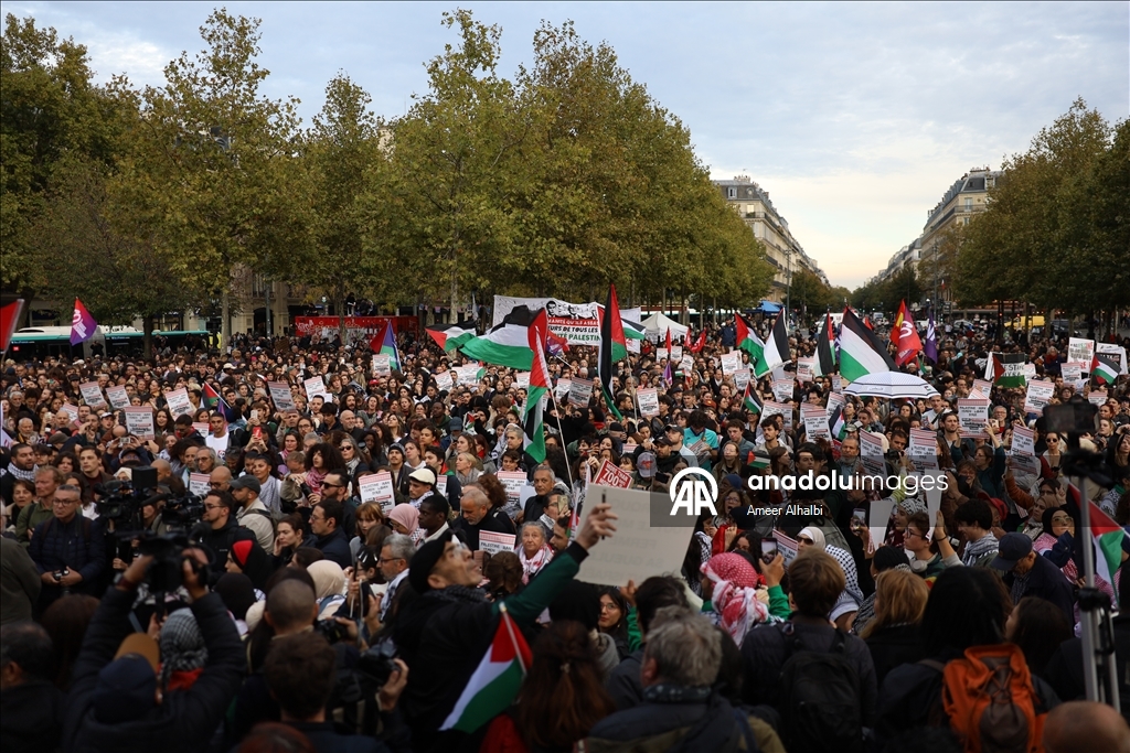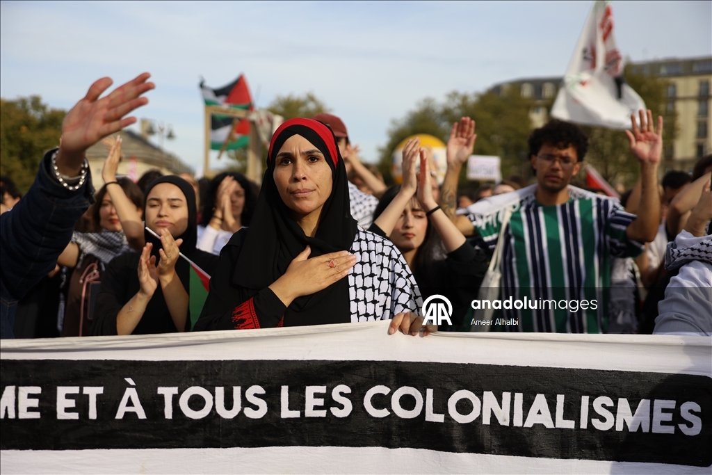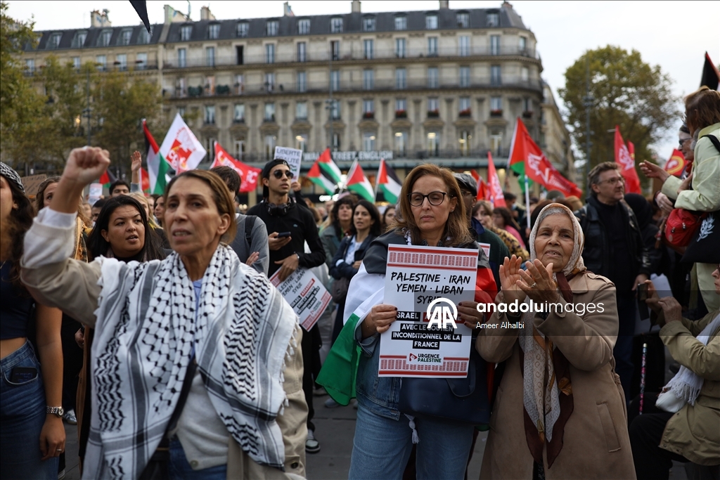 Fransa'nın başkenti Paris'te Filistin'e destek gösterisi düzenlendi. Paris'in simgesel Cumhuriyet Meydanı'nda toplanan Filistin destekçileri, İsrail'in aylardır devam eden Gazze'ye yönelik saldırılarına tepki gösterdi. (Ameer Alhalbi - Anadolu Ajansı)Ameer Alhalbi