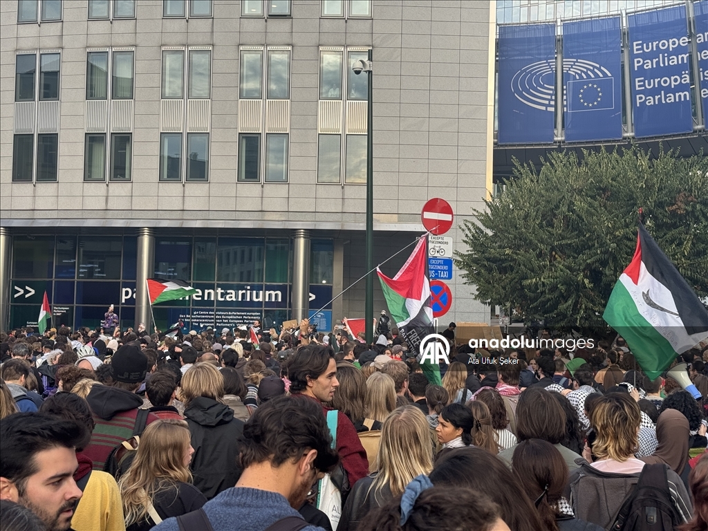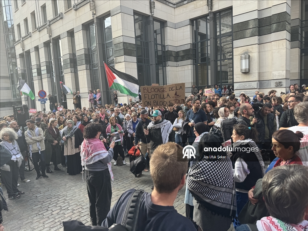 Belçika'nın başkenti Brüksel'de yüzlerce kişi, ablukayı kırmak ve insani yardım ulaştırmak için Gazze'ye doğru yola çıkan Küresel Sumud Filosu'na İsrail ordusunun saldırısını protesto etti. Göstericiler, Belçika Dışişleri Bakanlığından ana yolları kullanarak Avrupa Parlamentosu (AP) önünde yer alan Lüksemburg Meydanı'na kadar yürüdü. (Ata Ufuk Şeker - Anadolu Ajansı)Ata Ufuk Şeker