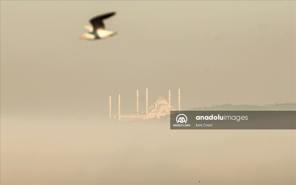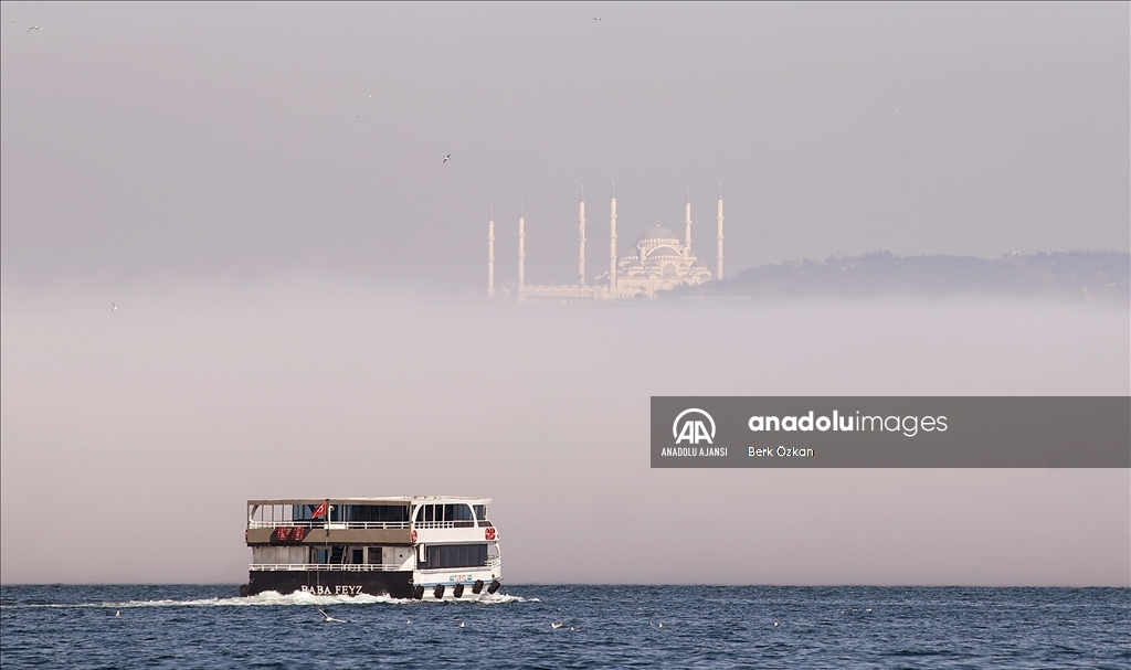 İstanbul Boğazı'nda sis etkili oldu. Boğazı kaplayan sis Büyük Çamlıca Camisi ile güzel görüntü oluşturdu. ( Berk Özkan - Anadolu Ajansı )Berk Özkan