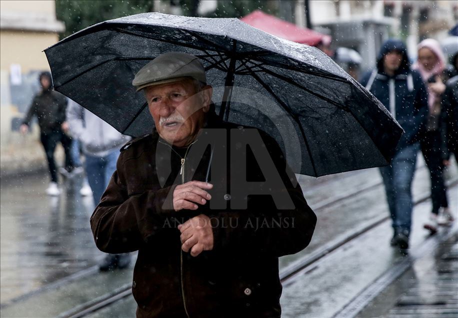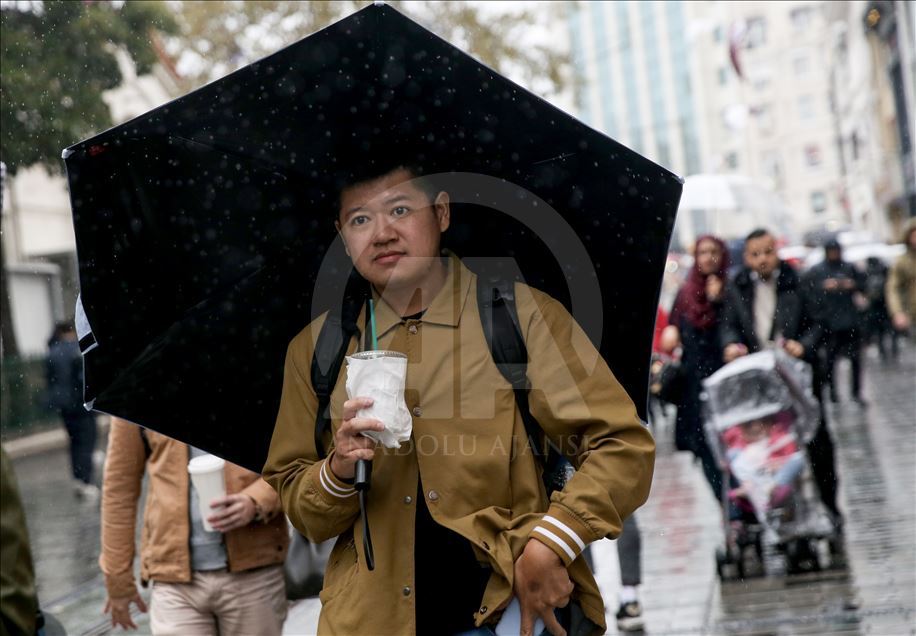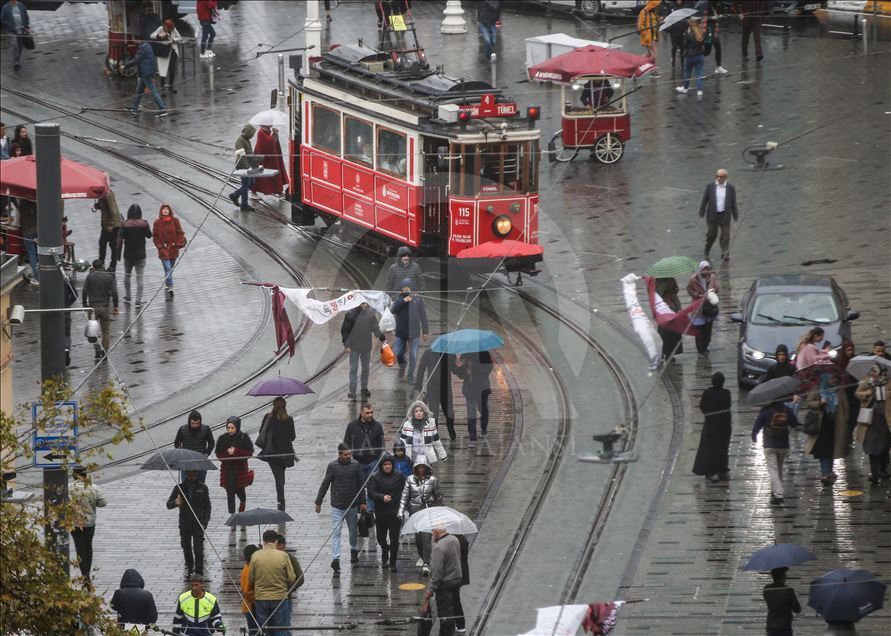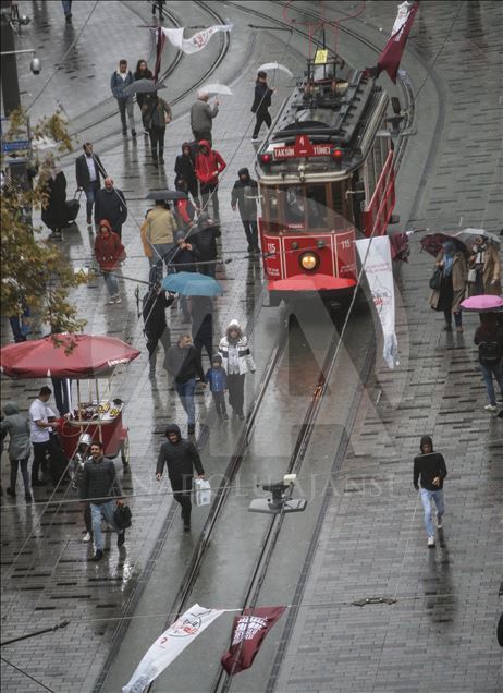 İstanbul’da yağan yağmur, İstiklal Caddesi’nde etkili oldu. ( Elif Öztürk - Anadolu Ajansı )Elif Öztürk