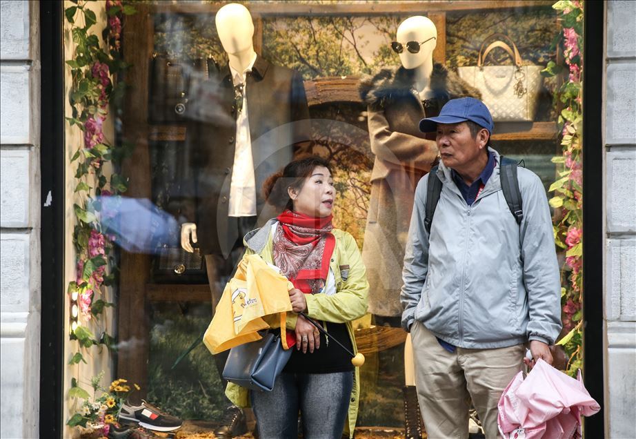 İstanbul’da yağan yağmur, İstiklal Caddesi’nde etkili oldu. Bazı turistler, yağmurdan korunmak için dükkan önlerinde bekledi. ( Elif Öztürk - Anadolu Ajansı )Elif Öztürk
