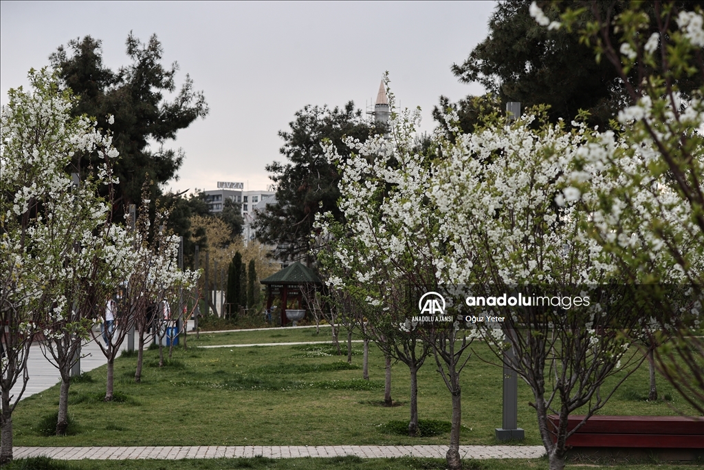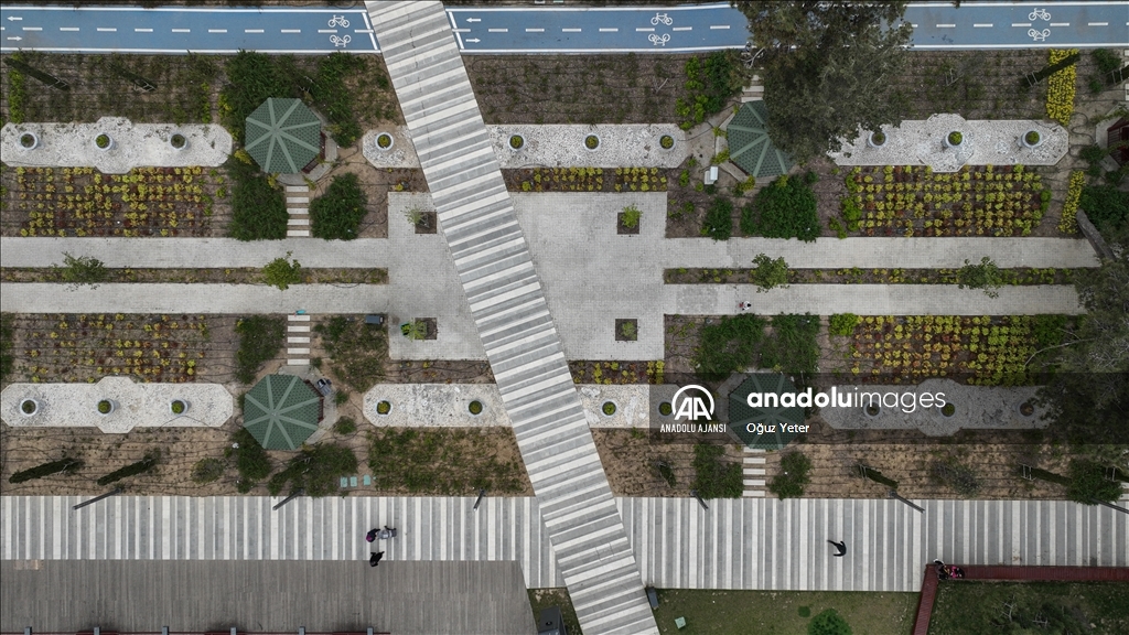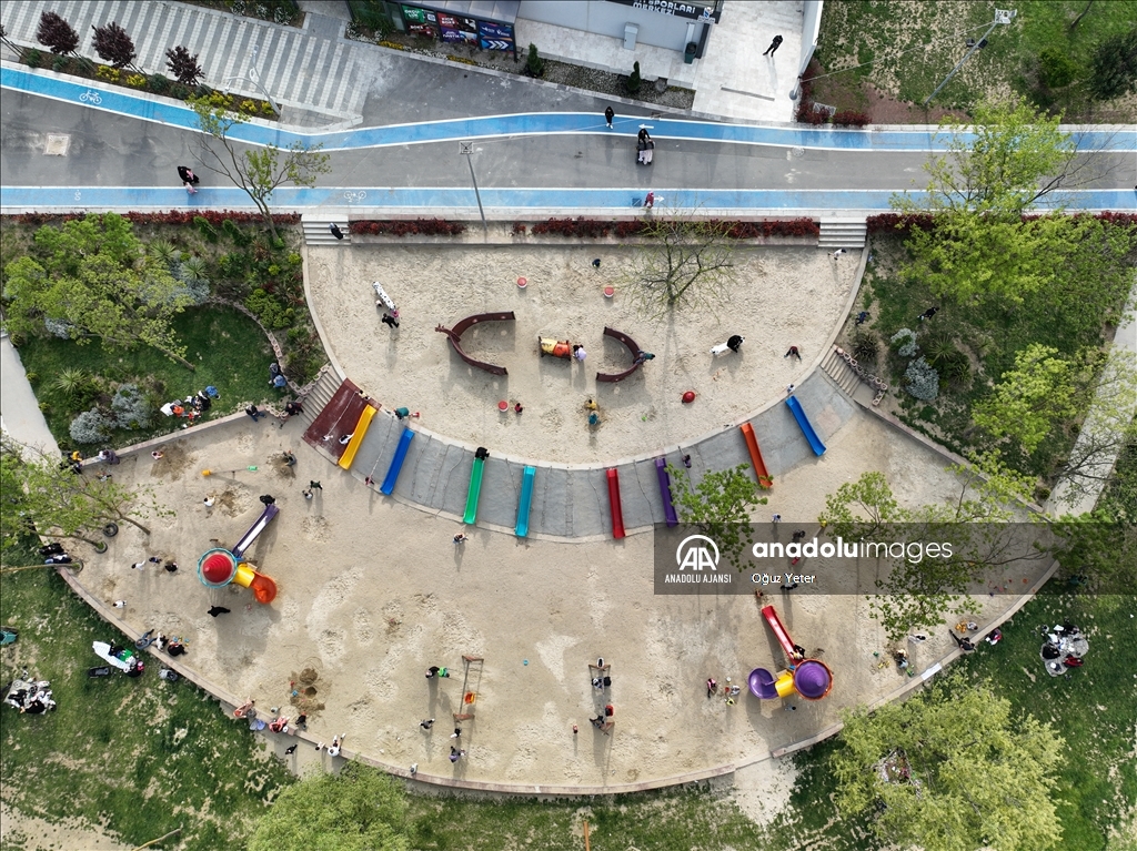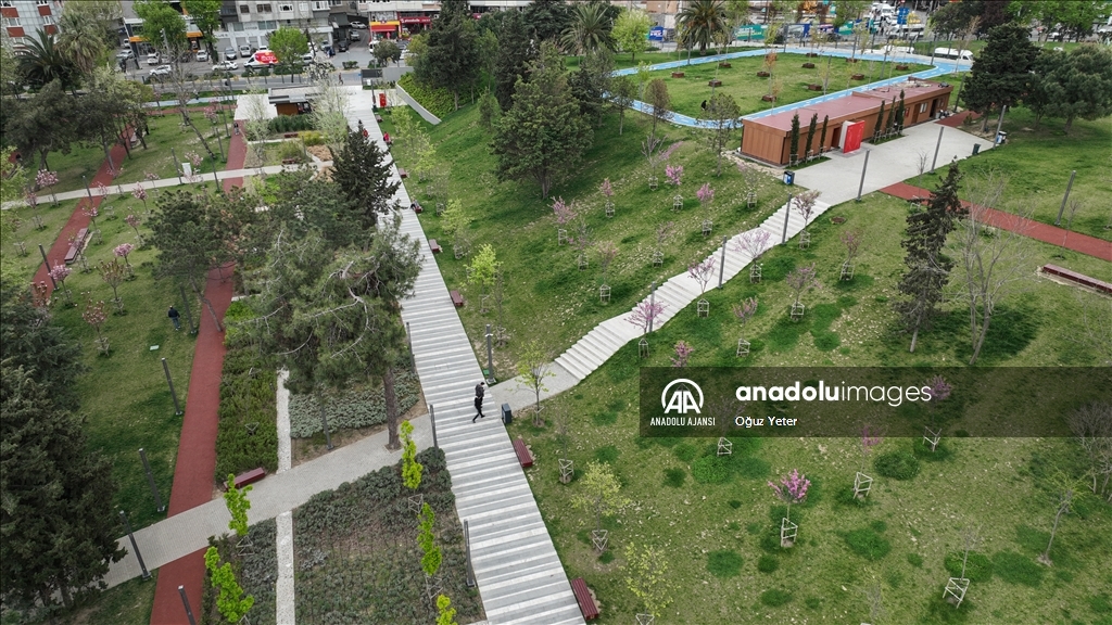 İstanbul'da sayısı 15'i bulan millet bahçeleri kentin dört bir yanında oluşturduğu yeşil koridorlarla vatandaşların şehrin karmaşasından uzaklaşarak nefes almalarına imkan sunuyor. "Cumhuriyet tarihinin en büyük yeşil alan adımı" olarak tanımlanan millet bahçeleri projesiyle Çevre, Şehircilik ve İklim Değişikliği Bakanlığı, 2028'e kadar 100 milyon metrekare yeşil alana ulaşmayı hedefliyor. Zeytinburnu Beştelsiz Mahallesi'ndeki taşınan askeri lojmanlardan boşalan ve park olarak düzenlenen Zeytinburnu Millet Bahçesi, ilçe sakinlerine şehrin içinde yeşil alan imkanı sunuyor. ( Oğuz Yeter - Anadolu Ajansı )Oğuz Yeter