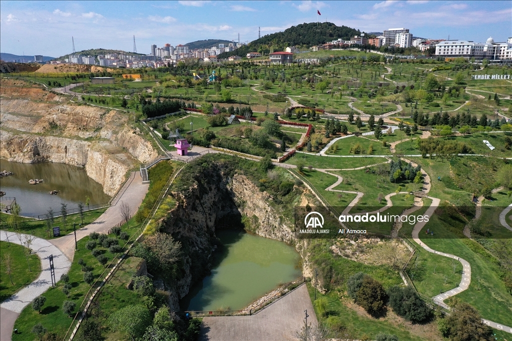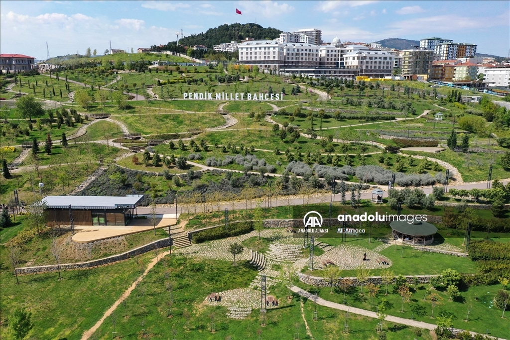 İstanbul'da sayısı 15'i bulan millet bahçeleri kentin dört bir yanında oluşturduğu yeşil koridorlarla vatandaşların şehrin karmaşasından uzaklaşarak nefes almalarına imkan sunuyor. "Cumhuriyet tarihinin en büyük yeşil alan adımı" olarak tanımlanan millet bahçeleri projesiyle Çevre, Şehircilik ve İklim Değişikliği Bakanlığı, 2028'e kadar 100 milyon metrekare yeşil alana ulaşmayı hedefliyor. Eskiden maden sahası olan 285 bin metrekarelik alan üzerine yapılan Pendik Millet Bahçesi, doğal ve yapay göletleri, 6 seyir terası, 5 bin 215 metrelik yürüyüş parkuru, 4 bin 600 metrekare ekstrem spor alanı, 7 bin 275 metrelik bisiklet yolu, 1300 kişilik amfi tiyatrosu, piknik alanları ve Adalar'ı gören manzarasıyla ilçede yaşayan vatandaşlar için bir cazibe merkezi haline geldi. ( Ali Atmaca - Anadolu Ajansı )Ali Atmaca