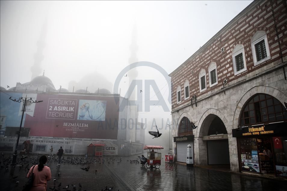 İstanbul Eminönü ve çevresinde sabahın erken saatlerinde sis etkili oldu. ( Emrah Yorulmaz - Anadolu Ajansı )Emrah Yorulmaz
